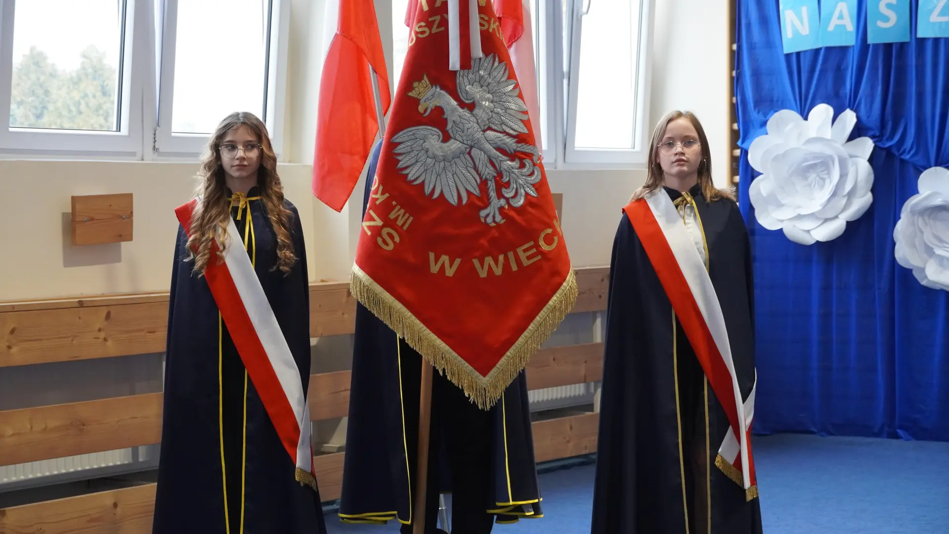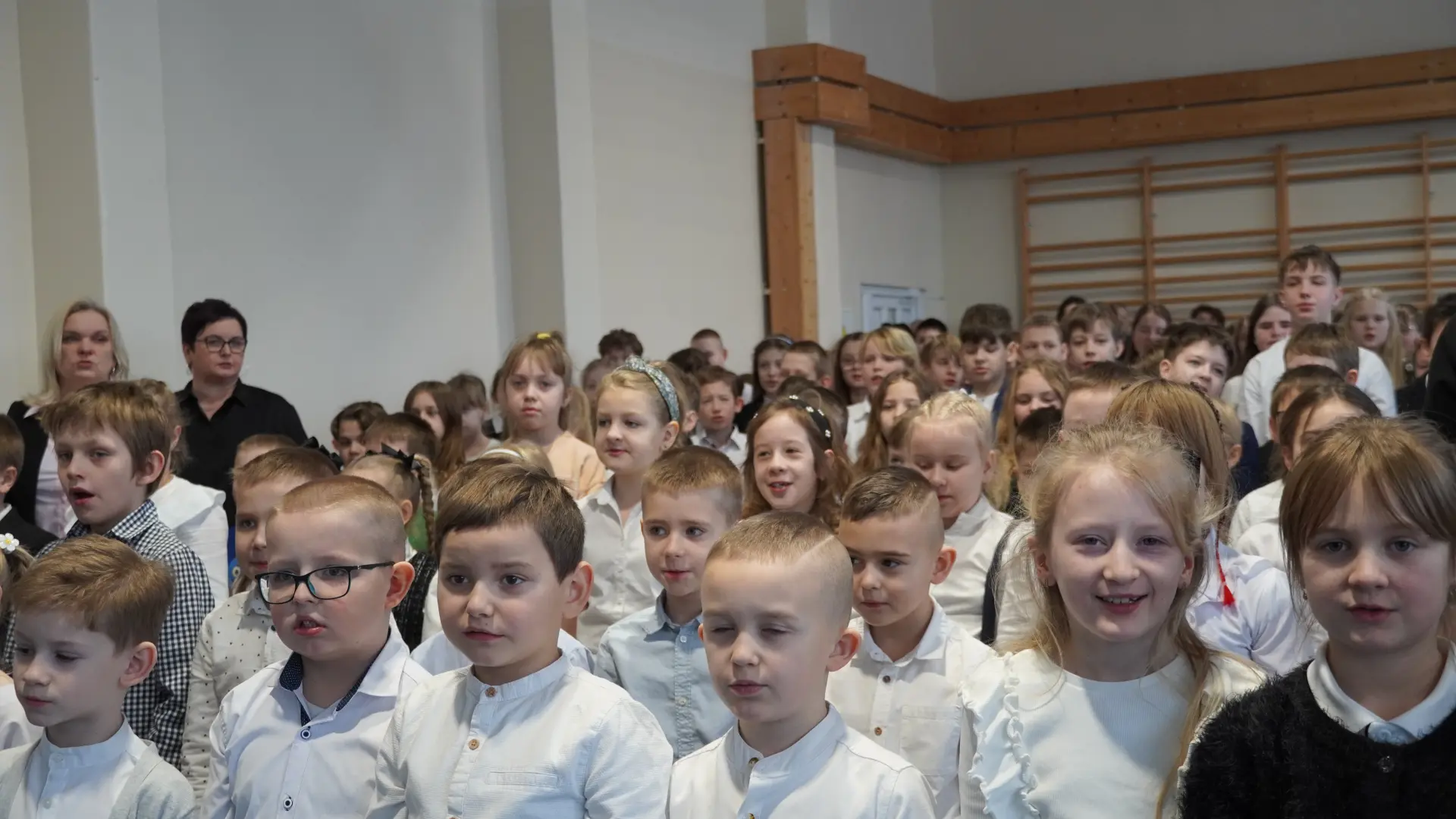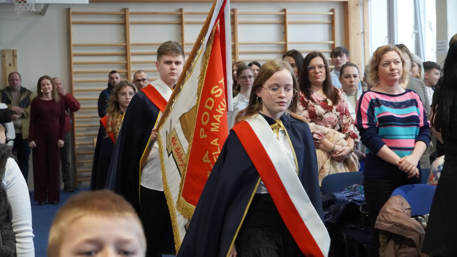 Apel miał patetyczny, uroczysty charakter. W pięknie udekorowanej sali gimnastycznej wybrzmiał „Mazurek Dąbrowskiego” i pieśń szkoły.