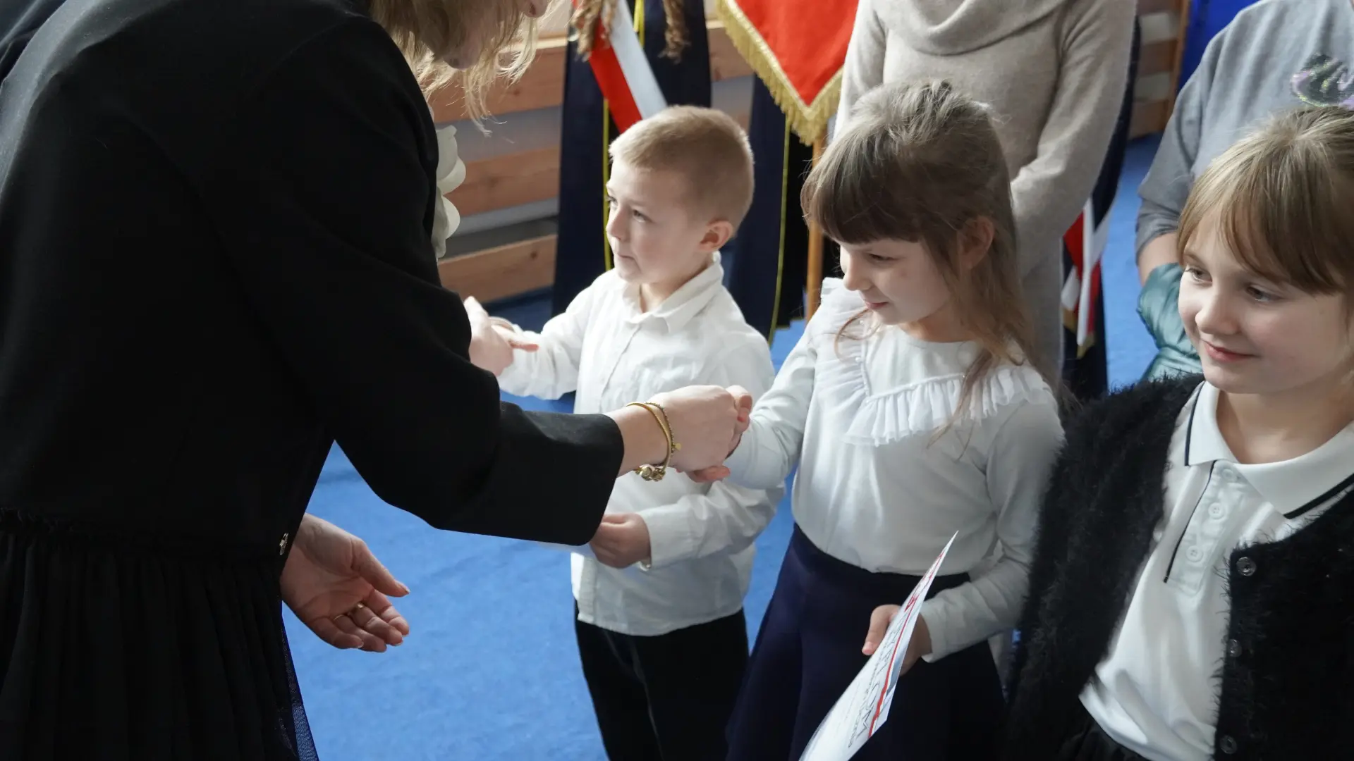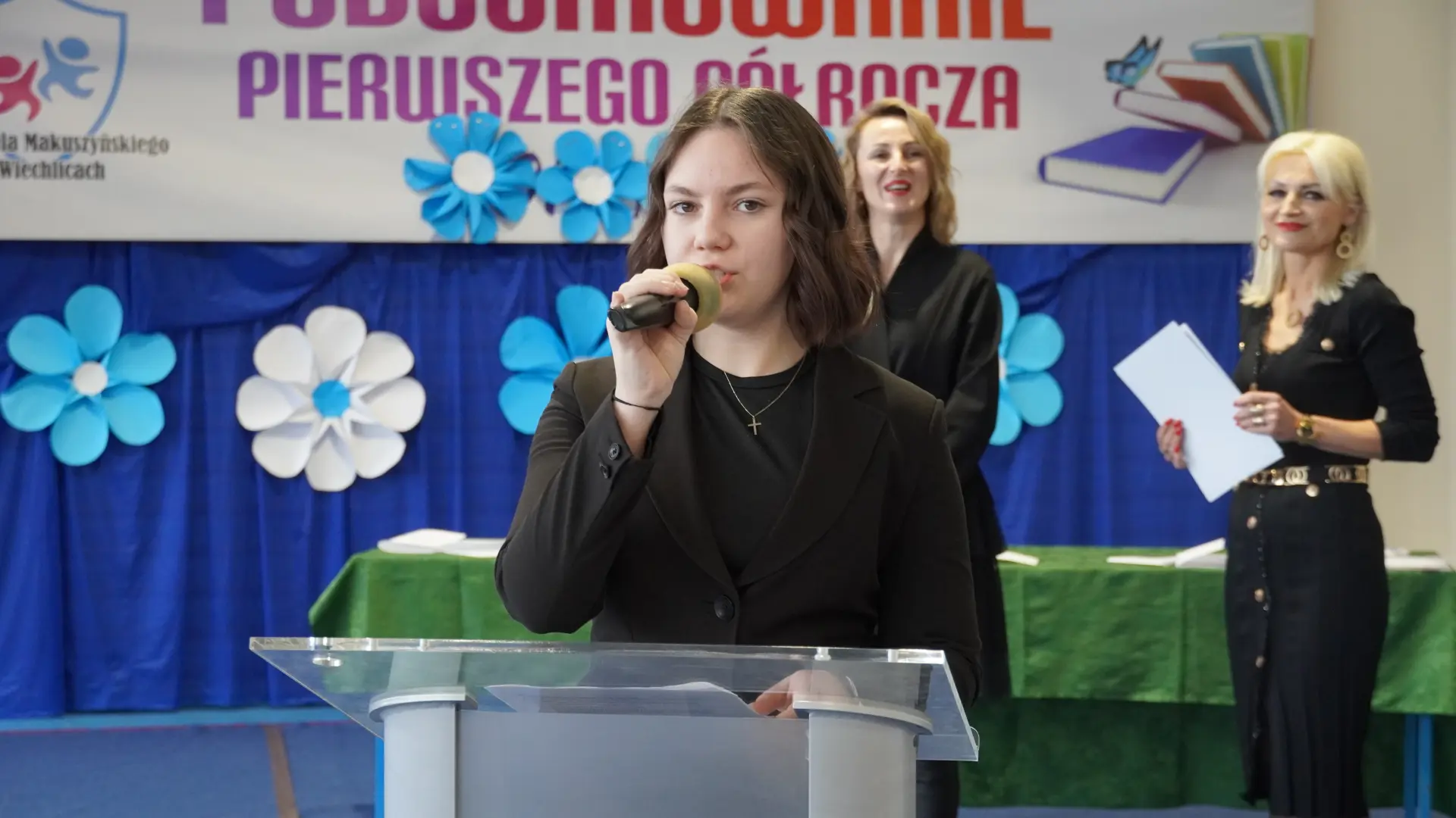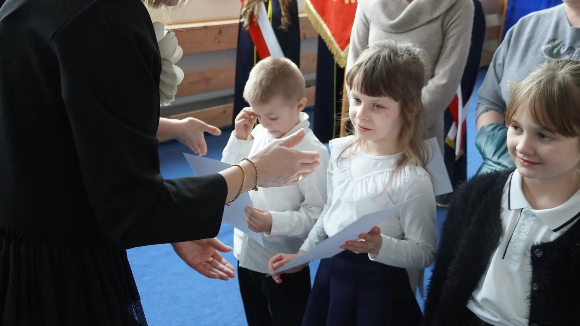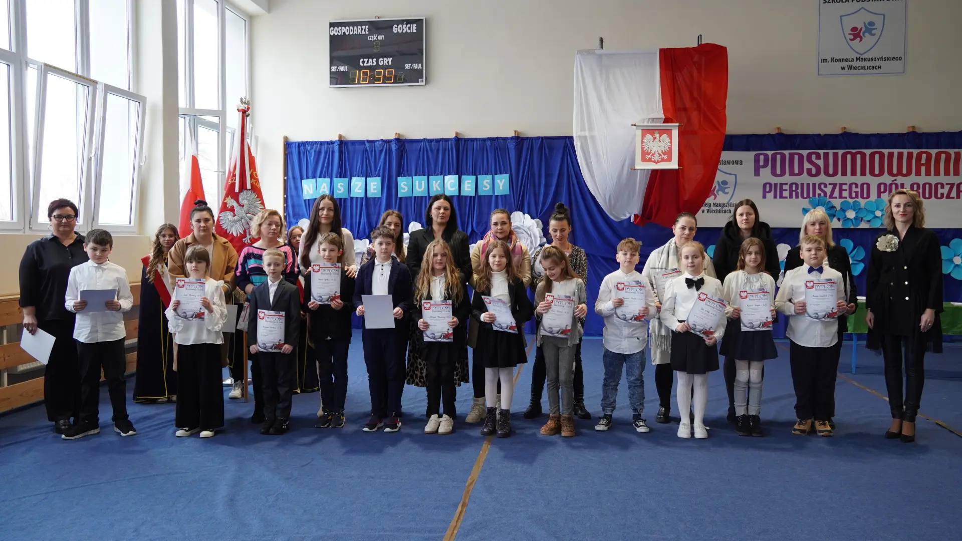 Apel miał patetyczny, uroczysty charakter. W pięknie udekorowanej sali gimnastycznej wybrzmiał „Mazurek Dąbrowskiego” i pieśń szkoły.