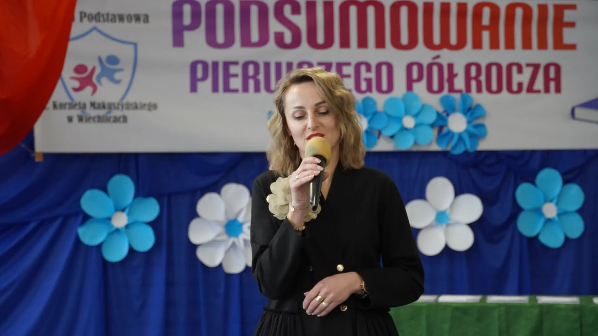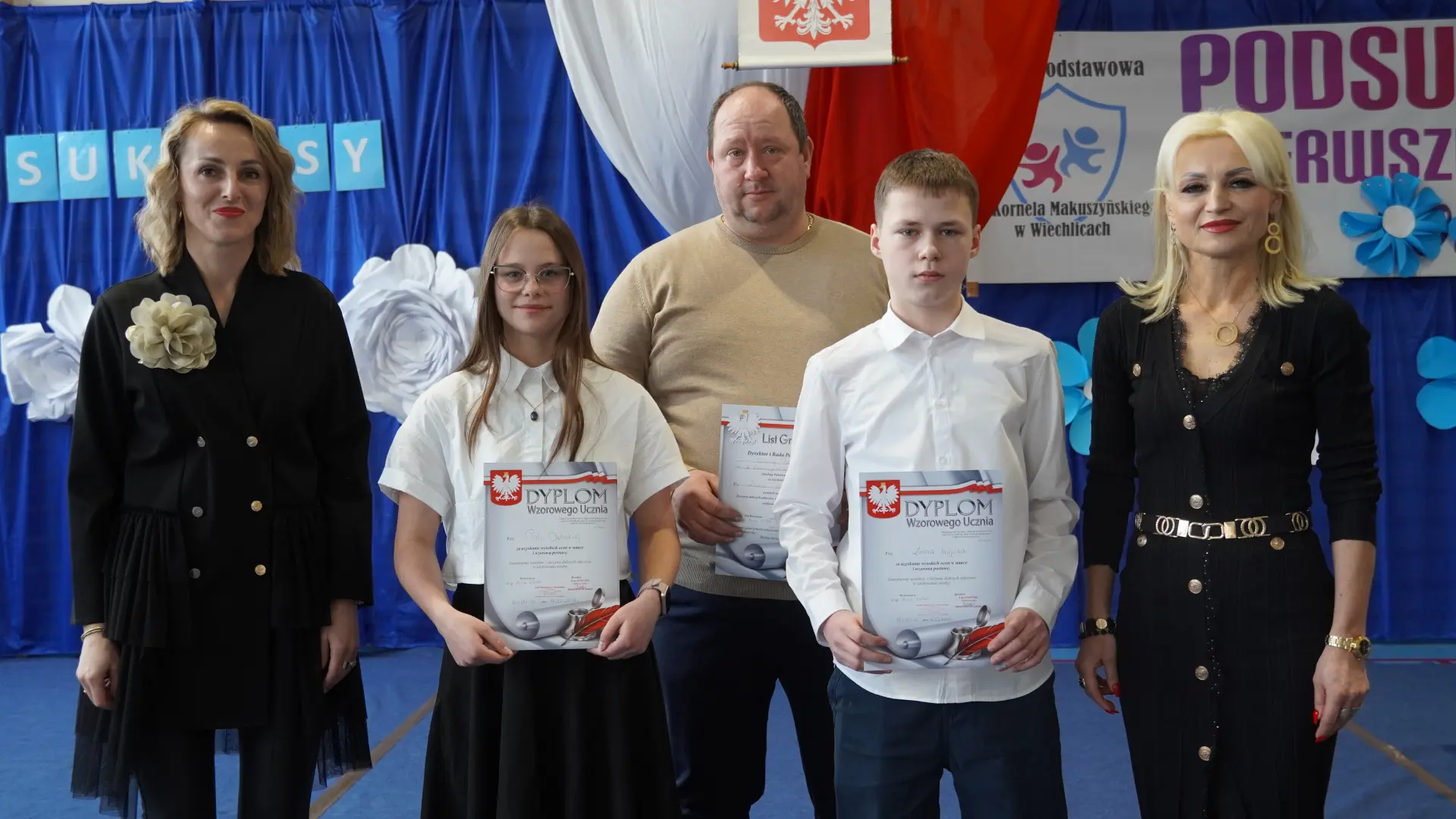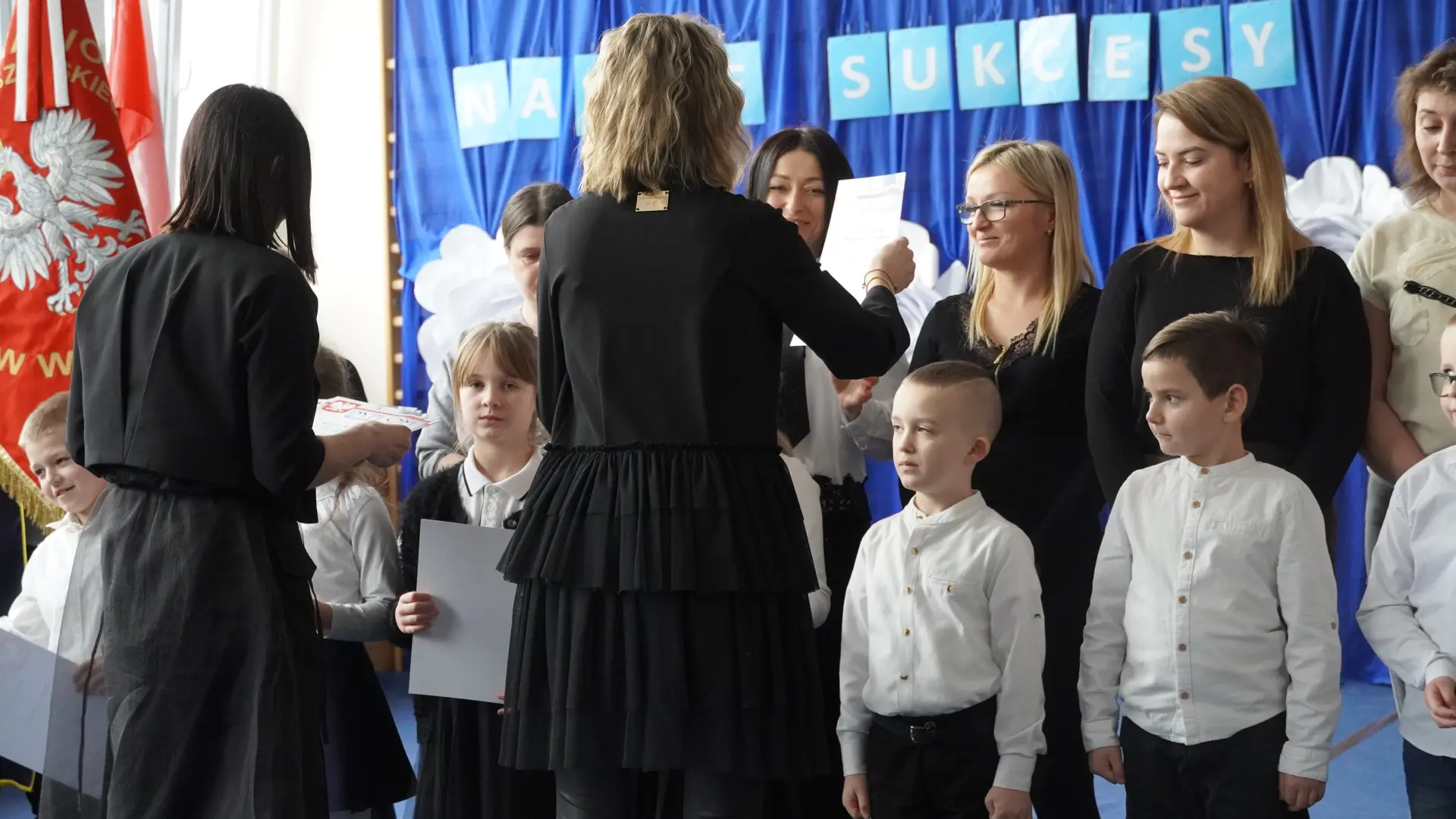 Przed punktem kulminacyjnym, tj. rozdaniem dyplomów wzorowego ucznia głos zabrała p. Sylwia Suszko, wicedyrektor szkoły, która pogratulowała sukcesów uczniom oraz ich rodzicom.