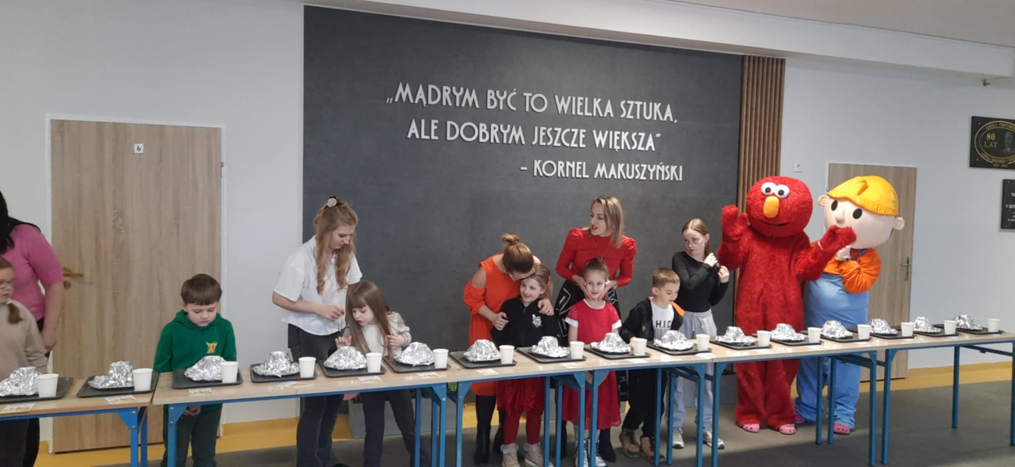 Dni Otwarte w Szkole Podstawowej w Wiechlicach rozpoczęły się z prawdziwym rozmachem! Już od progu na przyszłych przedszkolaków i uczniów czekały niespodzianki – kolorowe balony, szerokie uśmiechy pracowników szkoły oraz… Elmo i Bob Budowniczy, którzy wprowadzali wszystkich w radosny nastrój.