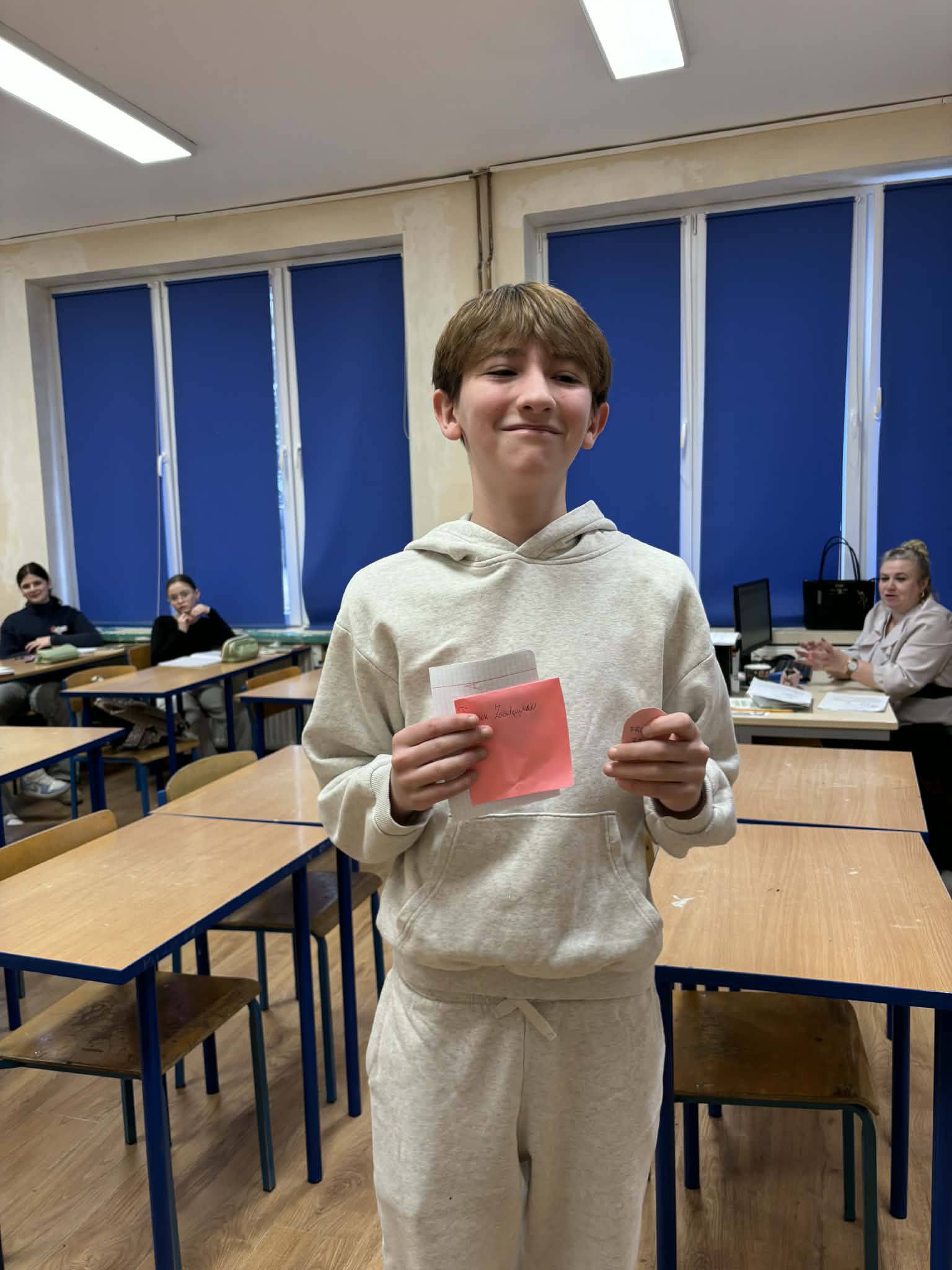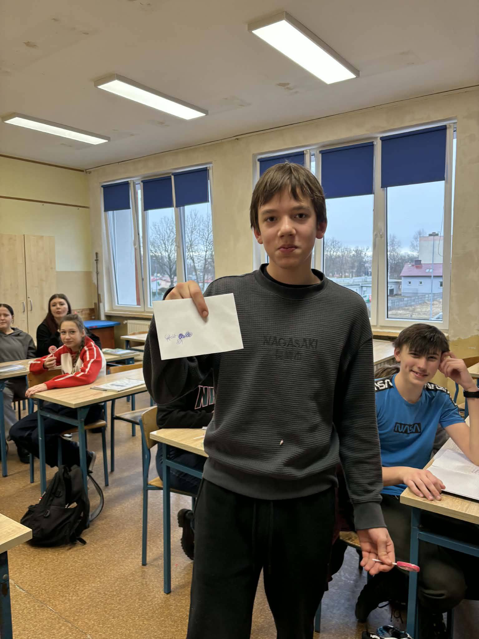 ❤️Walentynki to czas miłości, serdeczności i miłych słów, które przekazywali sobie uczniowie naszej szkoły w przeddzień Świętego Walentego. Walentynki roznosiły uczennice klasy 7 b - Ala, Wanessa i Magda.Ponadto z okazji tego miłego święta niespodziankę otrzymali uczniowie klasy 6 a przygotowaną przez rodziców z klasy. Były to słodkości i serduszka. Ale to nie koniec atrakcji, bo do klasy przypłynął tajemniczy list w butelce z zaszyfrowaną wiadomością. Uczniowie na podstawie specjalnego klucza, na który sami musieli wpaść, rozszyfrowali zapisane w liście slowa "Valentine's day".