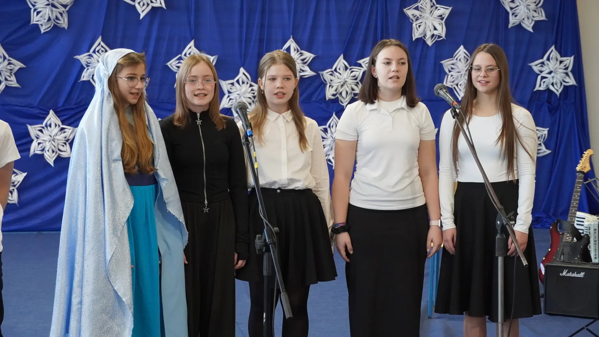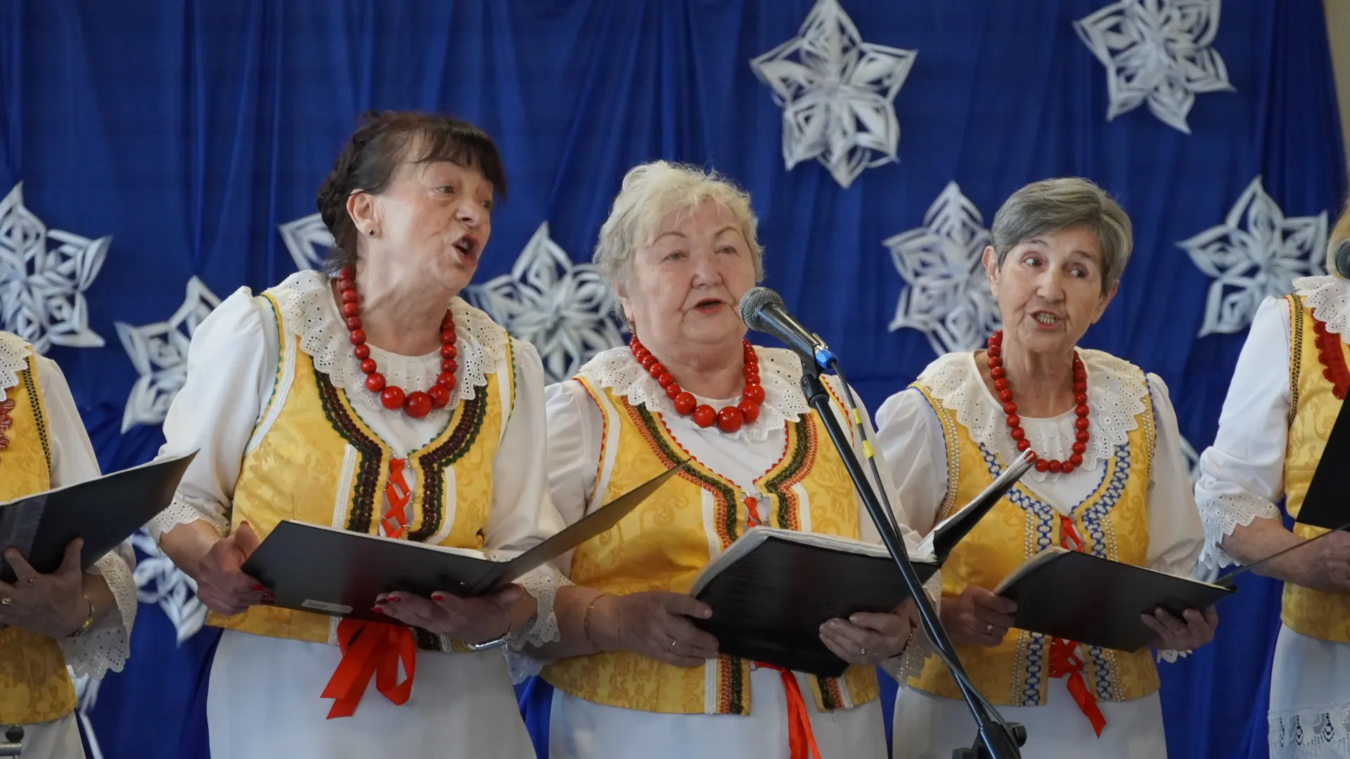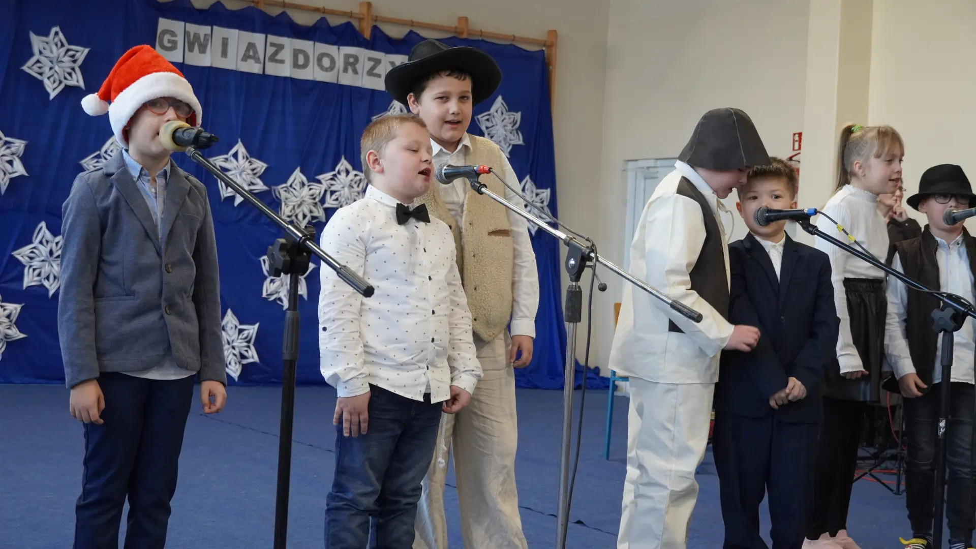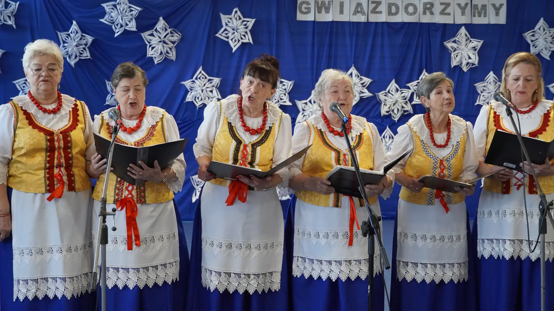 Uroczystość wzbogaciły również występy zaprzyjaźnionych zespołów: Dojrzałe Kłosy oraz Magdalenki, które zachwyciły publiczność swoim świątecznym repertuarem. Choć za oknem brak zimowej aury, w murach szkoły zapanował prawdziwie bożonarodzeniowy klimat. Na zakończenie głos zabrała pani Sylwia Suszko, składając świąteczne życzenia uczniom, nauczycielom, pracownikom szkoły oraz zaproszonym gościom. Finałem apelu było rozstrzygnięcie konkursów świątecznych i wręczenie nagród.