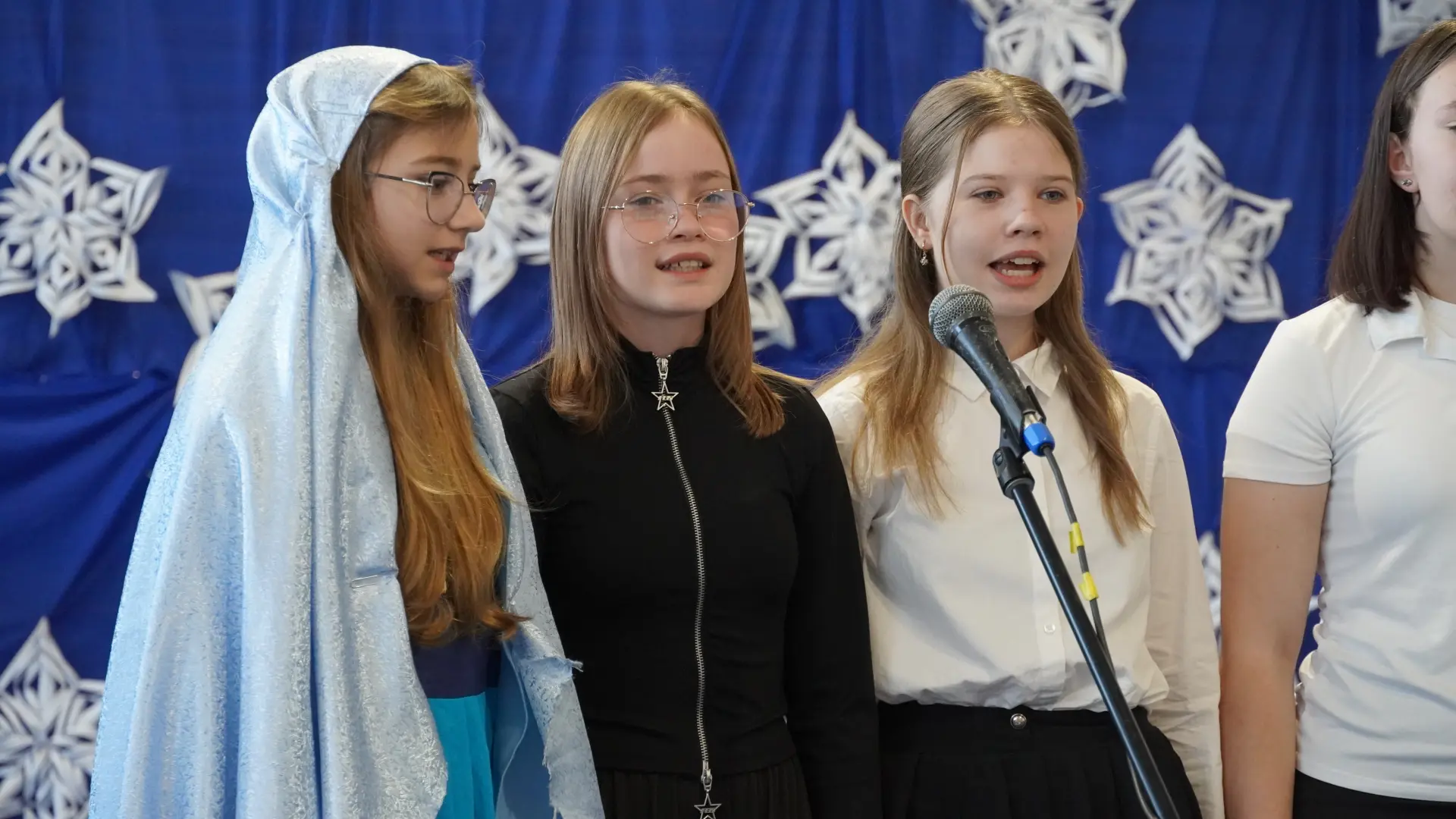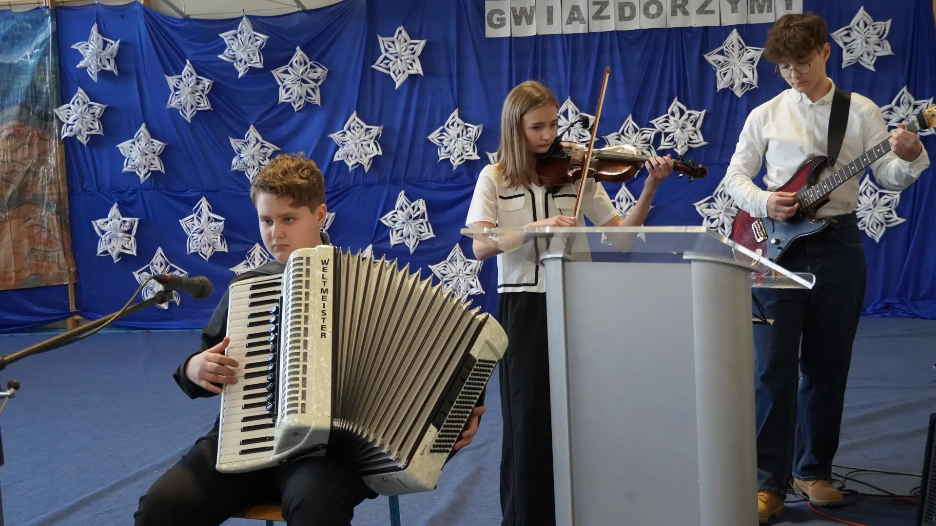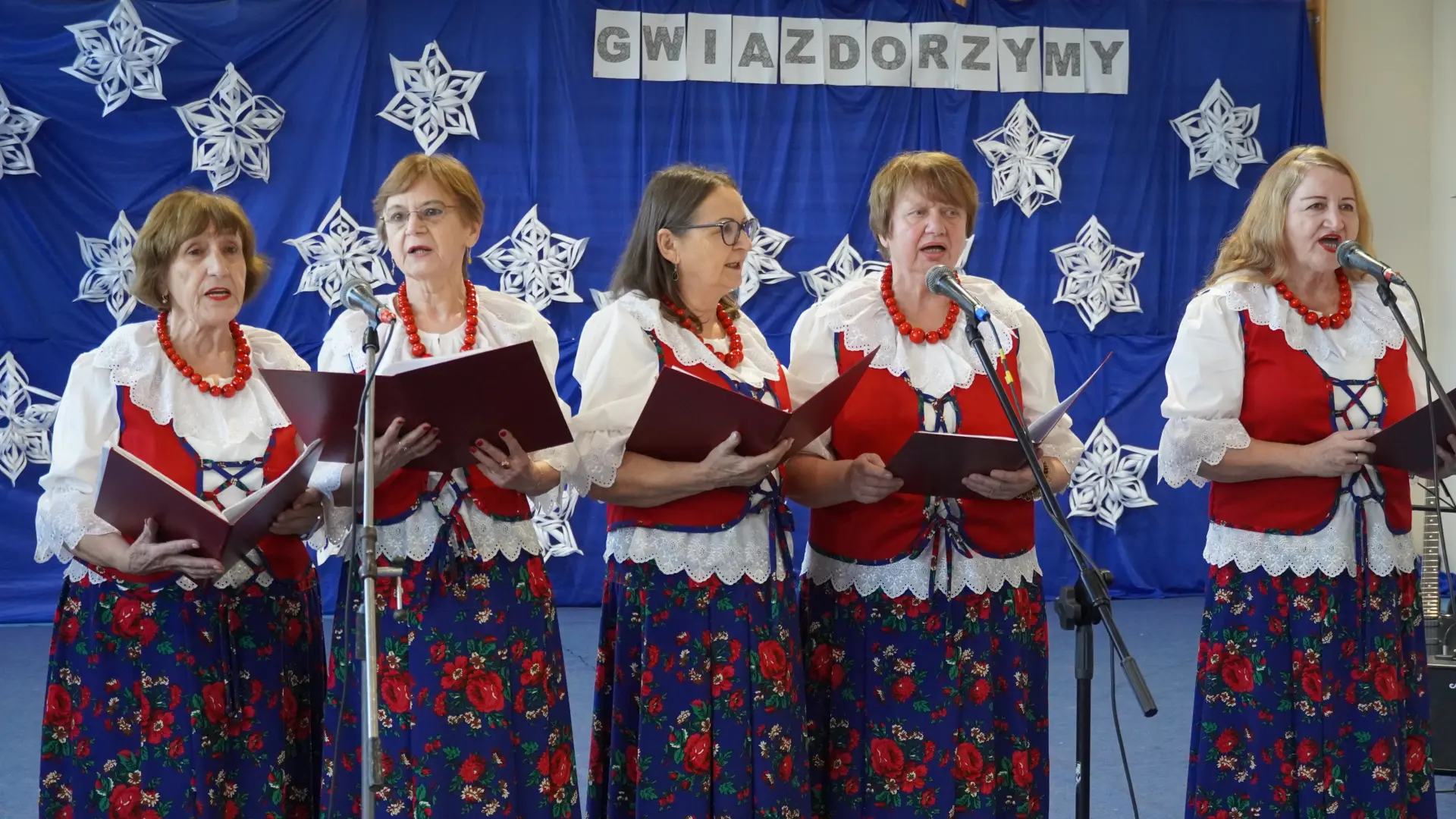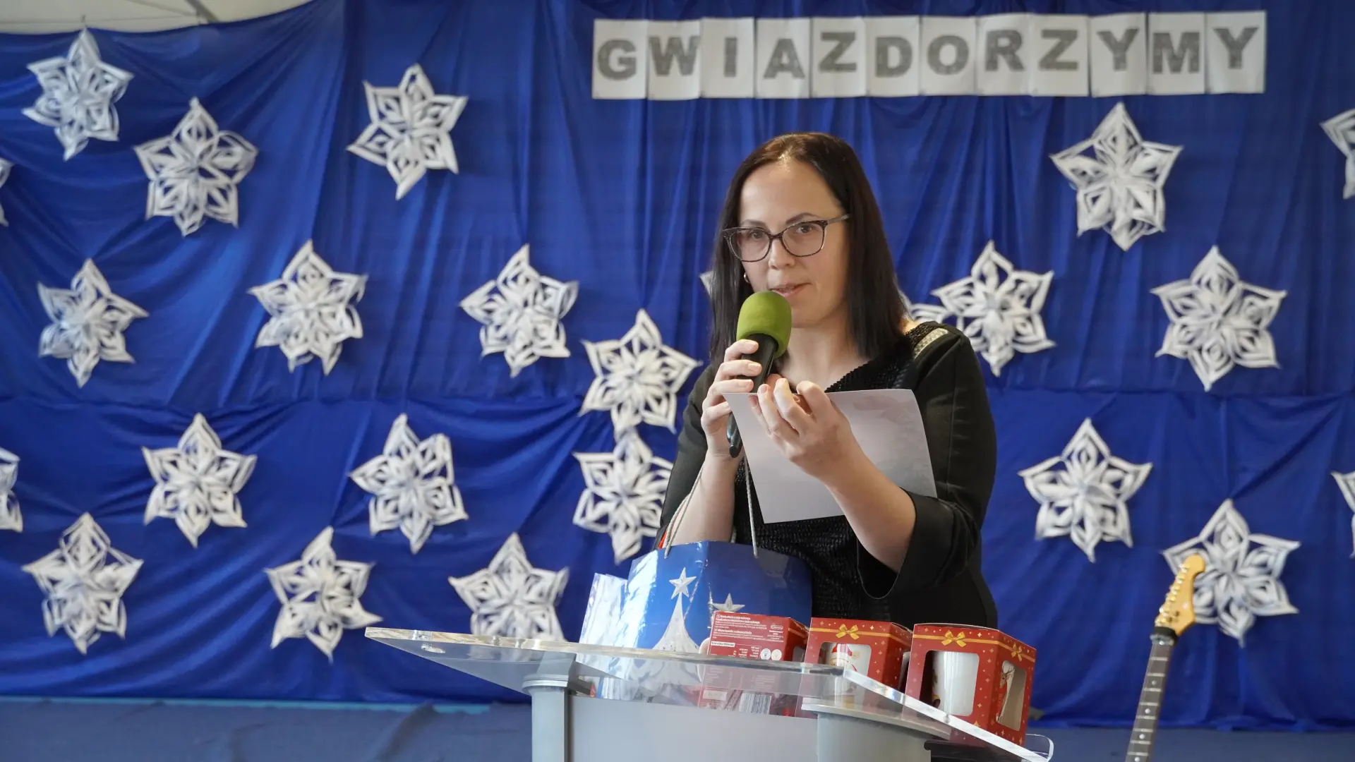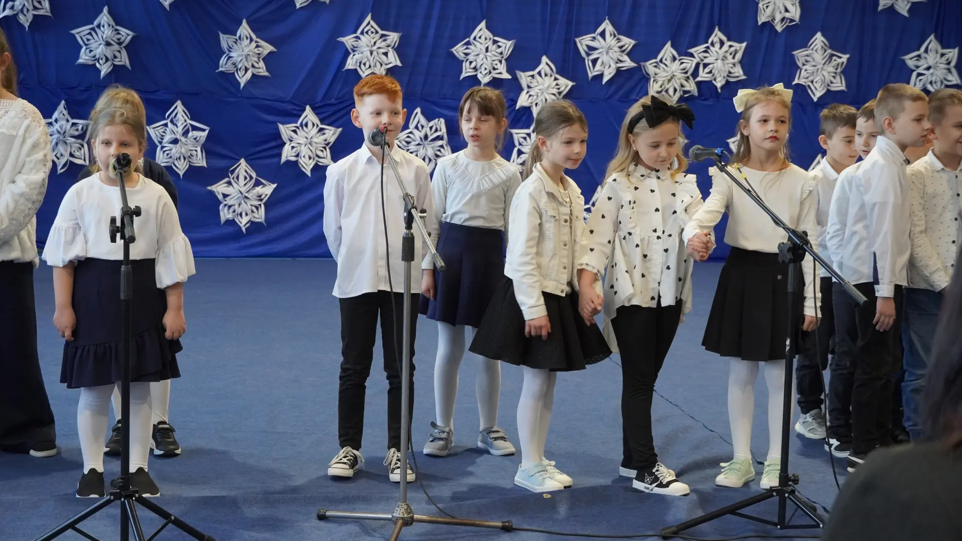 Uroczystość wzbogaciły również występy zaprzyjaźnionych zespołów: Dojrzałe Kłosy oraz Magdalenki, które zachwyciły publiczność swoim świątecznym repertuarem. Choć za oknem brak zimowej aury, w murach szkoły zapanował prawdziwie bożonarodzeniowy klimat. Na zakończenie głos zabrała pani Sylwia Suszko, składając świąteczne życzenia uczniom, nauczycielom, pracownikom szkoły oraz zaproszonym gościom. Finałem apelu było rozstrzygnięcie konkursów świątecznych i wręczenie nagród.