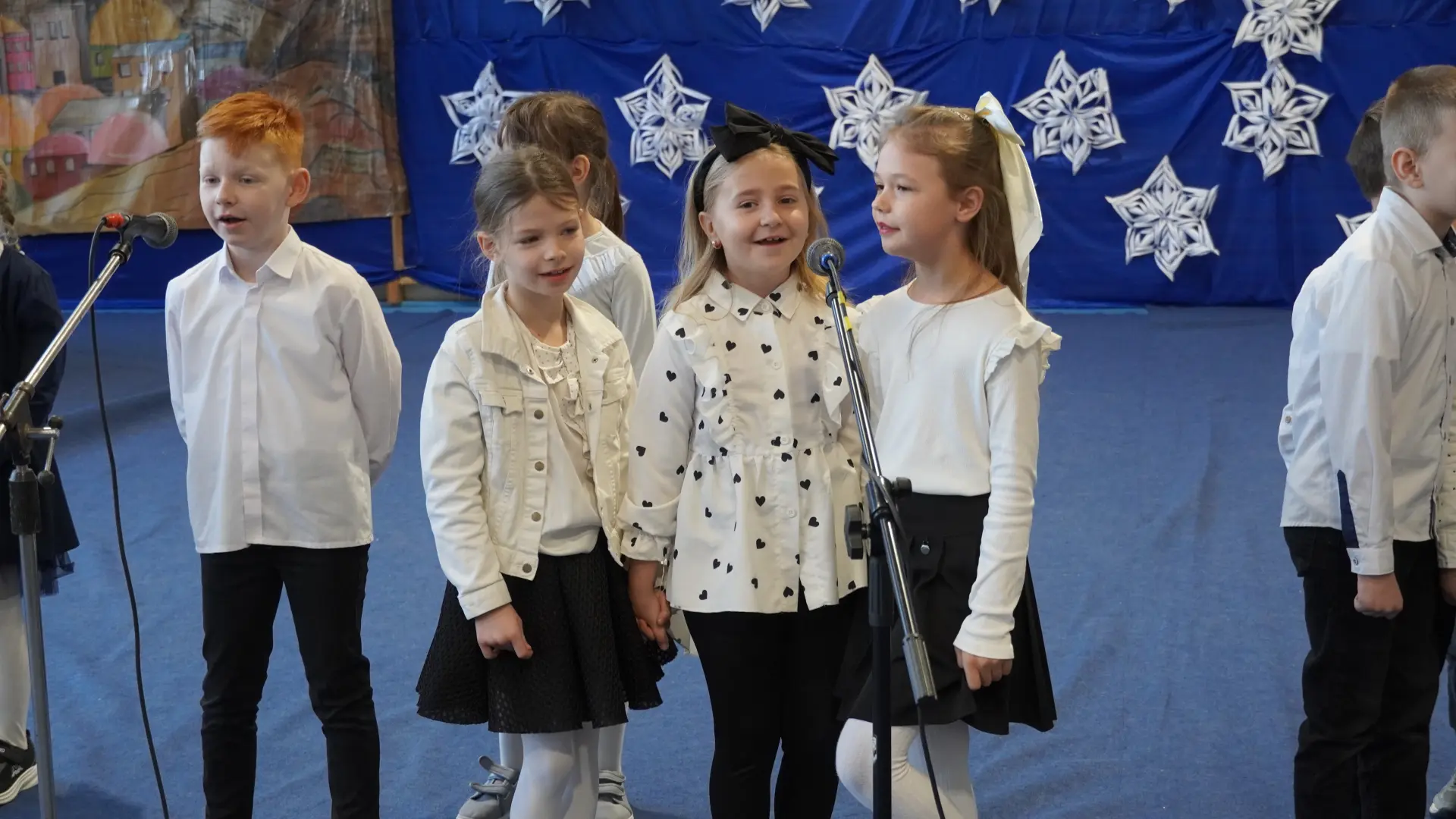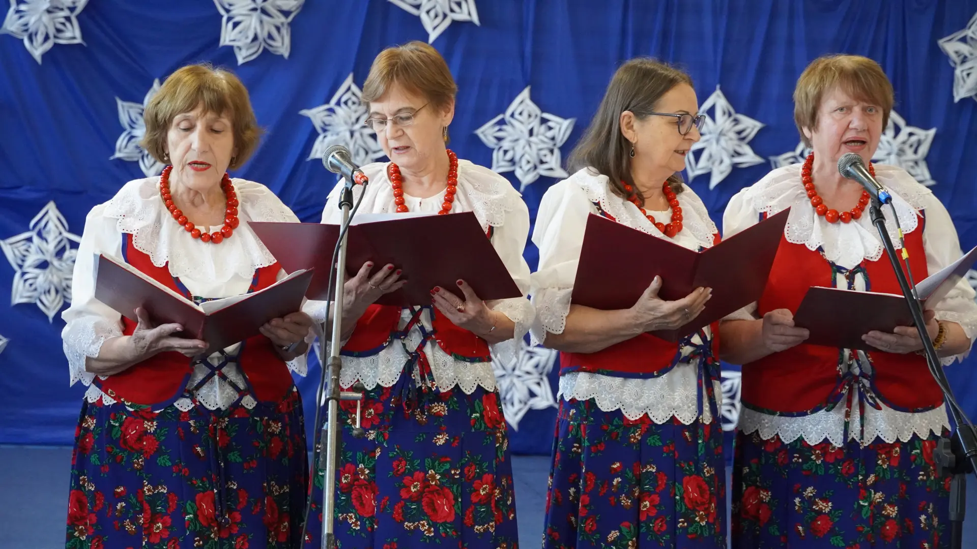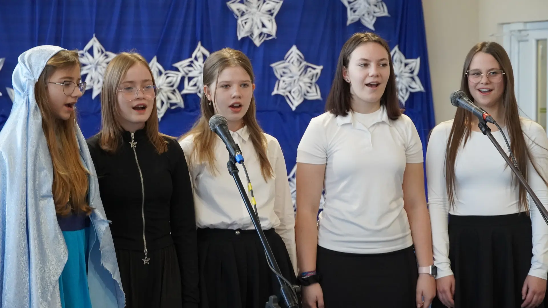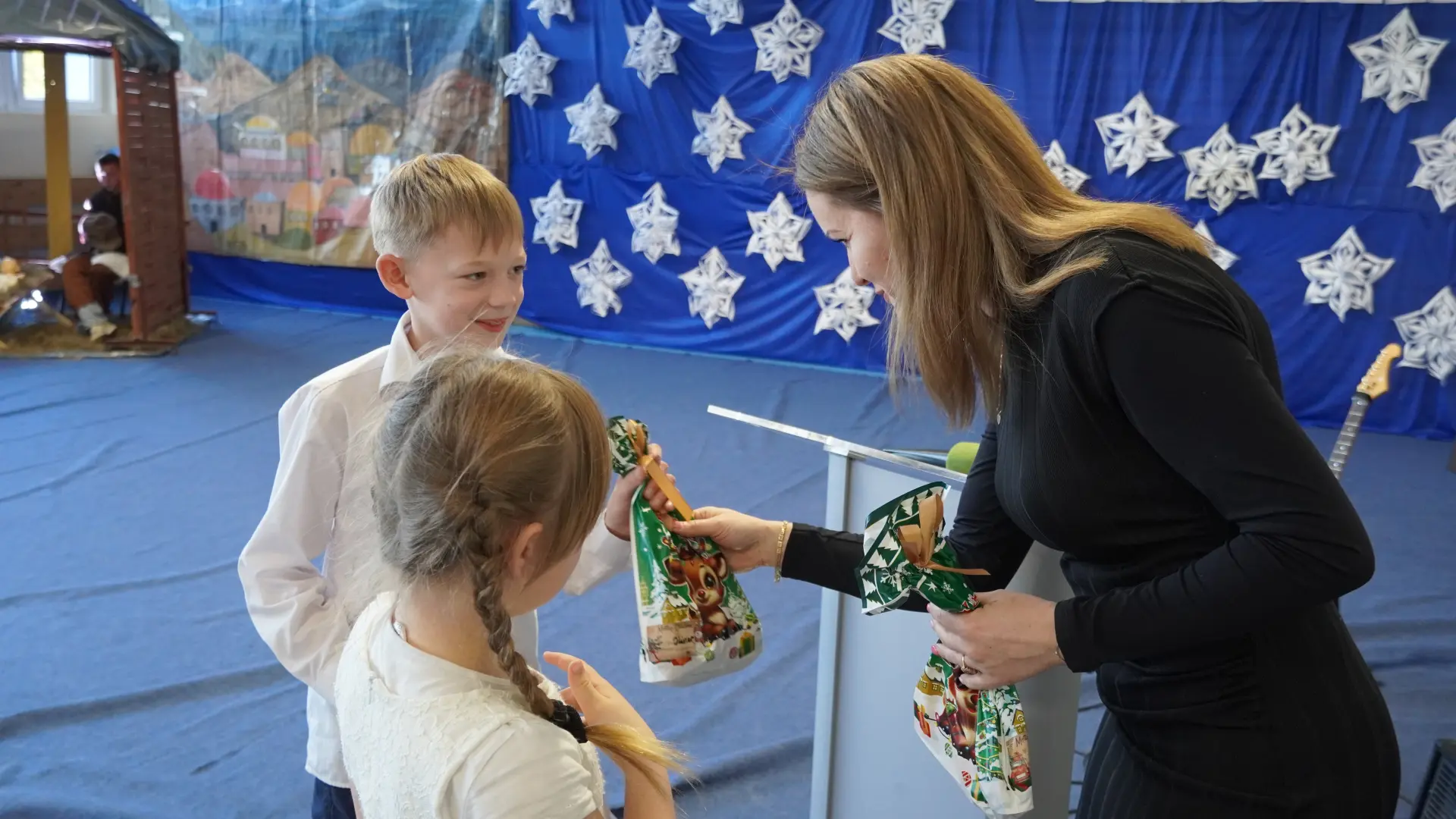 Uroczystość wzbogaciły również występy zaprzyjaźnionych zespołów: Dojrzałe Kłosy oraz Magdalenki, które zachwyciły publiczność swoim świątecznym repertuarem. Choć za oknem brak zimowej aury, w murach szkoły zapanował prawdziwie bożonarodzeniowy klimat. Na zakończenie głos zabrała pani Sylwia Suszko, składając świąteczne życzenia uczniom, nauczycielom, pracownikom szkoły oraz zaproszonym gościom. Finałem apelu było rozstrzygnięcie konkursów świątecznych i wręczenie nagród.