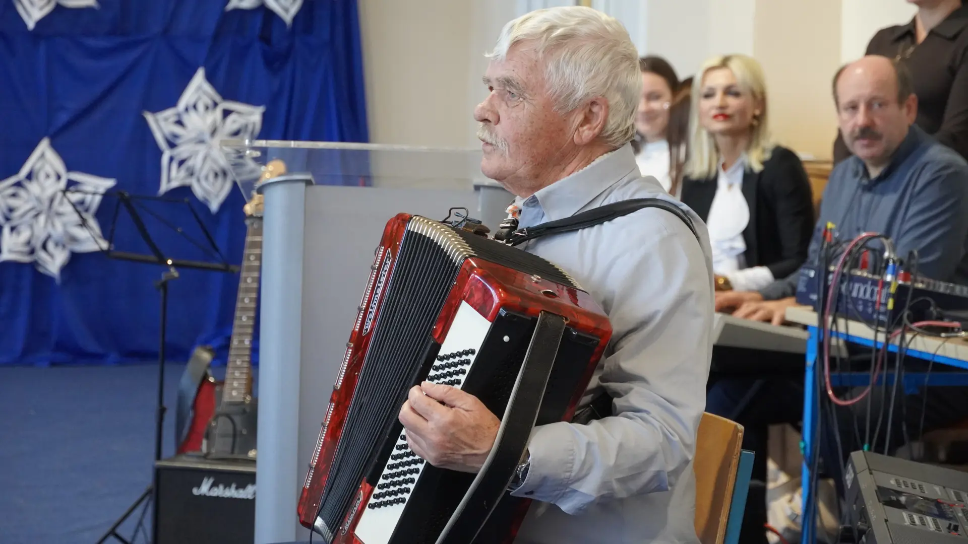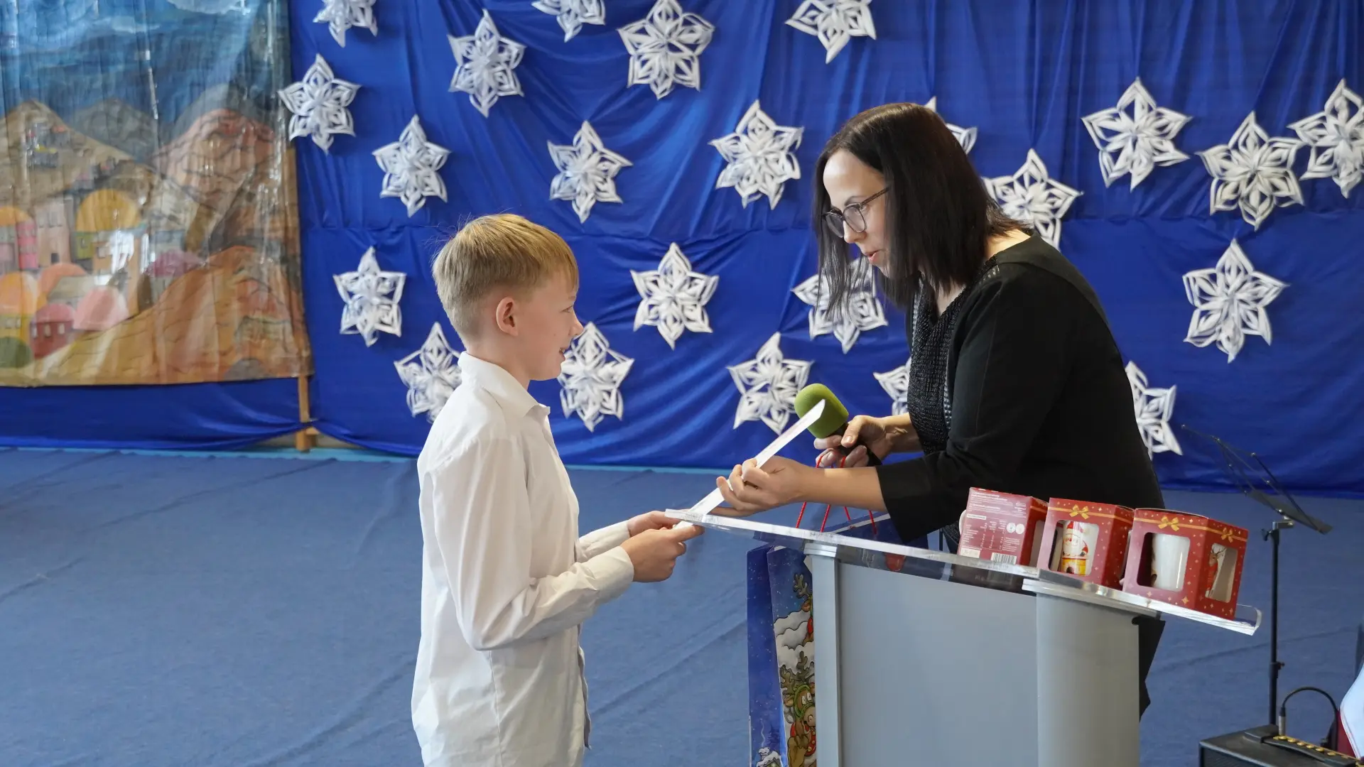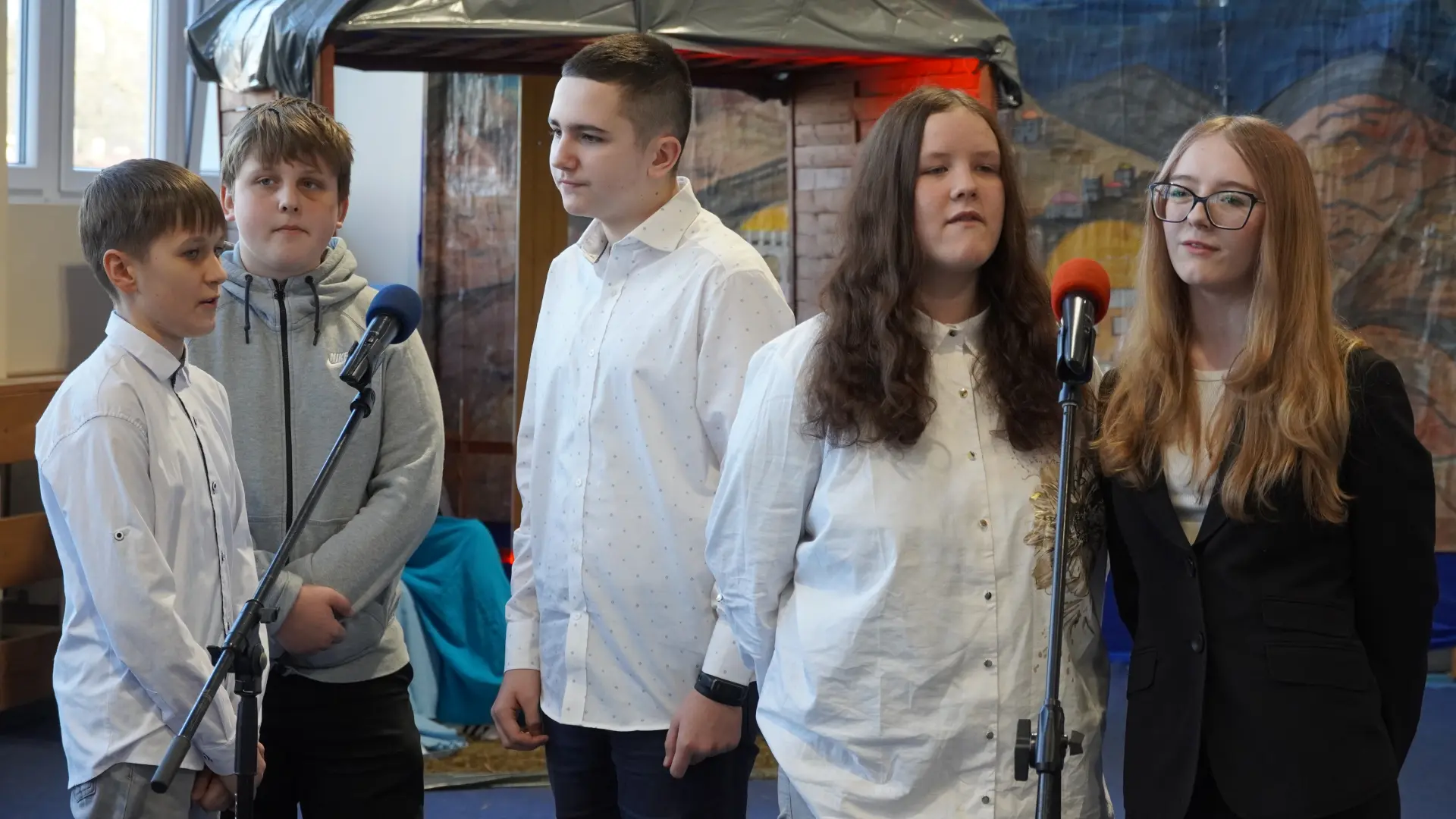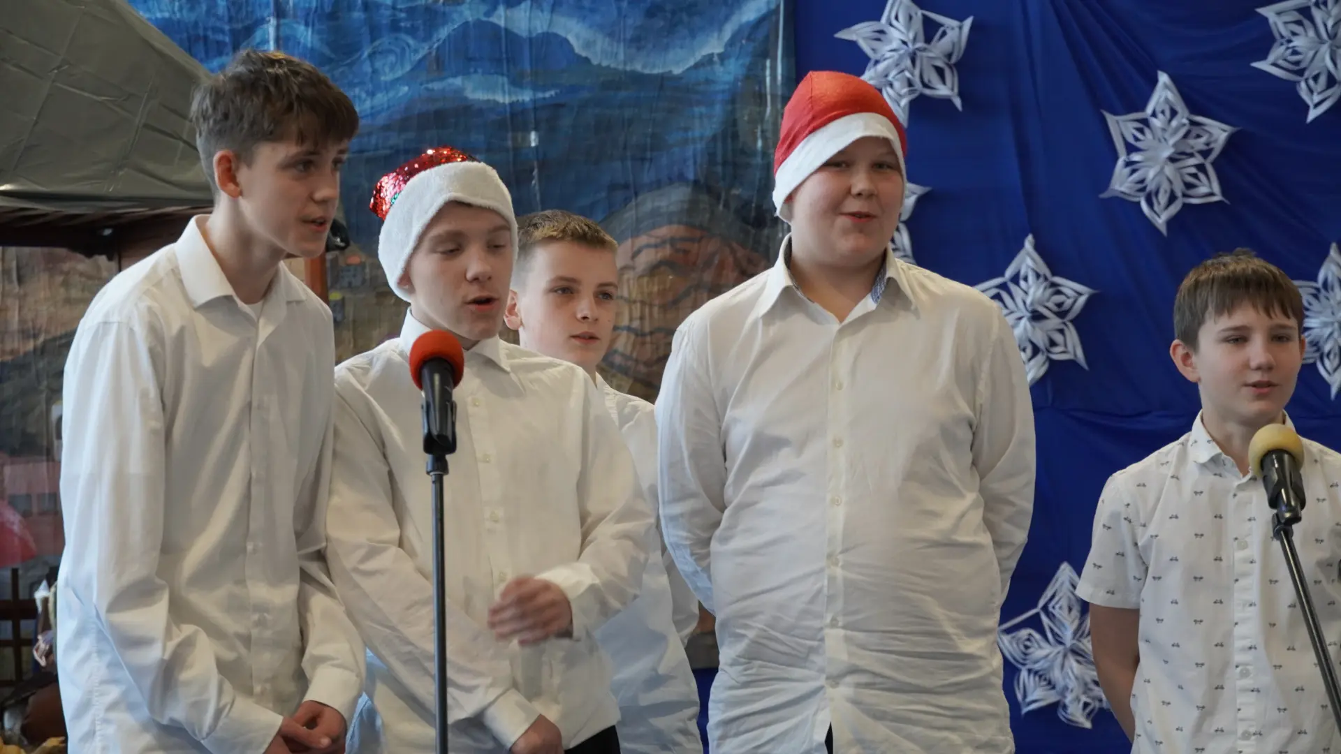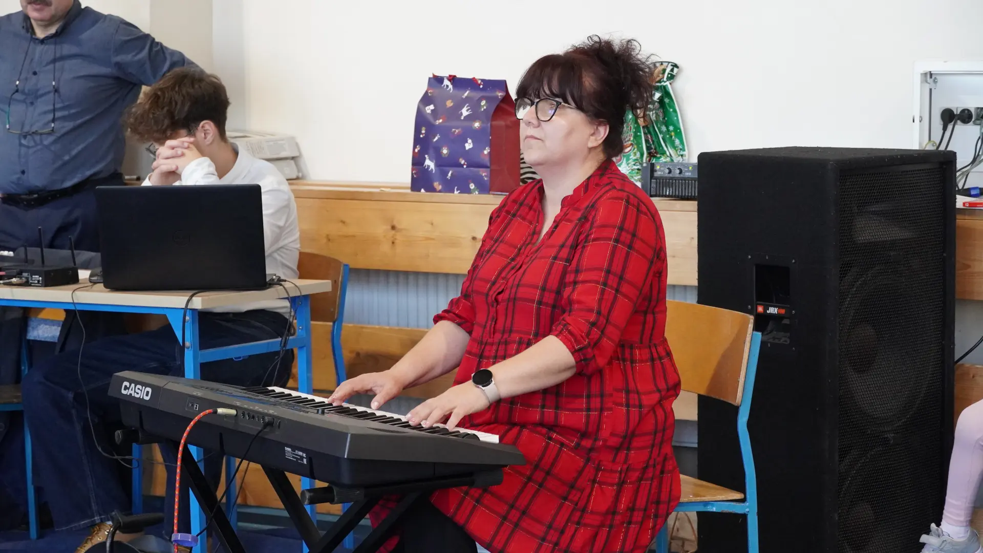 Uroczystość wzbogaciły również występy zaprzyjaźnionych zespołów: Dojrzałe Kłosy oraz Magdalenki, które zachwyciły publiczność swoim świątecznym repertuarem. Choć za oknem brak zimowej aury, w murach szkoły zapanował prawdziwie bożonarodzeniowy klimat. Na zakończenie głos zabrała pani Sylwia Suszko, składając świąteczne życzenia uczniom, nauczycielom, pracownikom szkoły oraz zaproszonym gościom. Finałem apelu było rozstrzygnięcie konkursów świątecznych i wręczenie nagród.