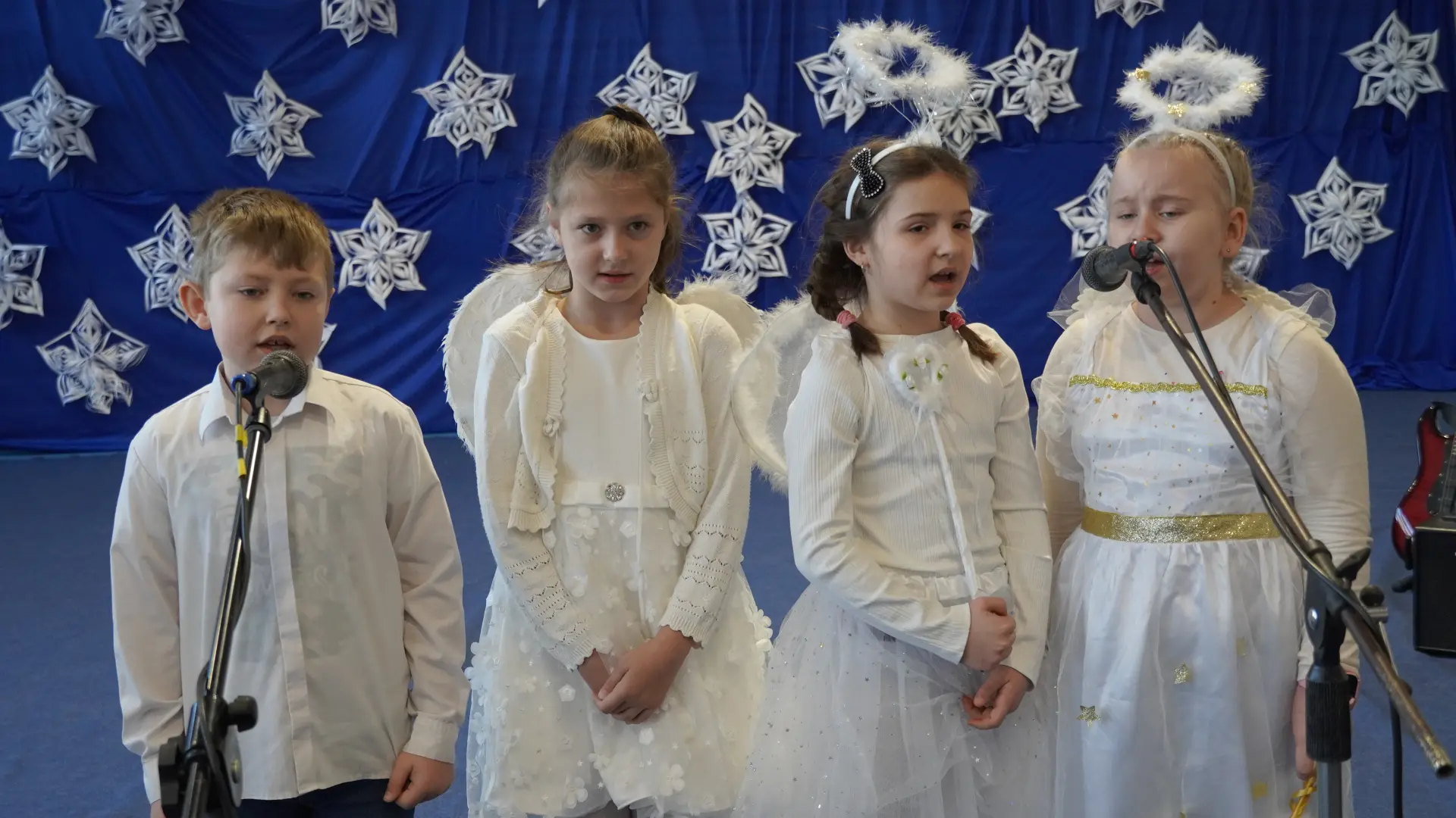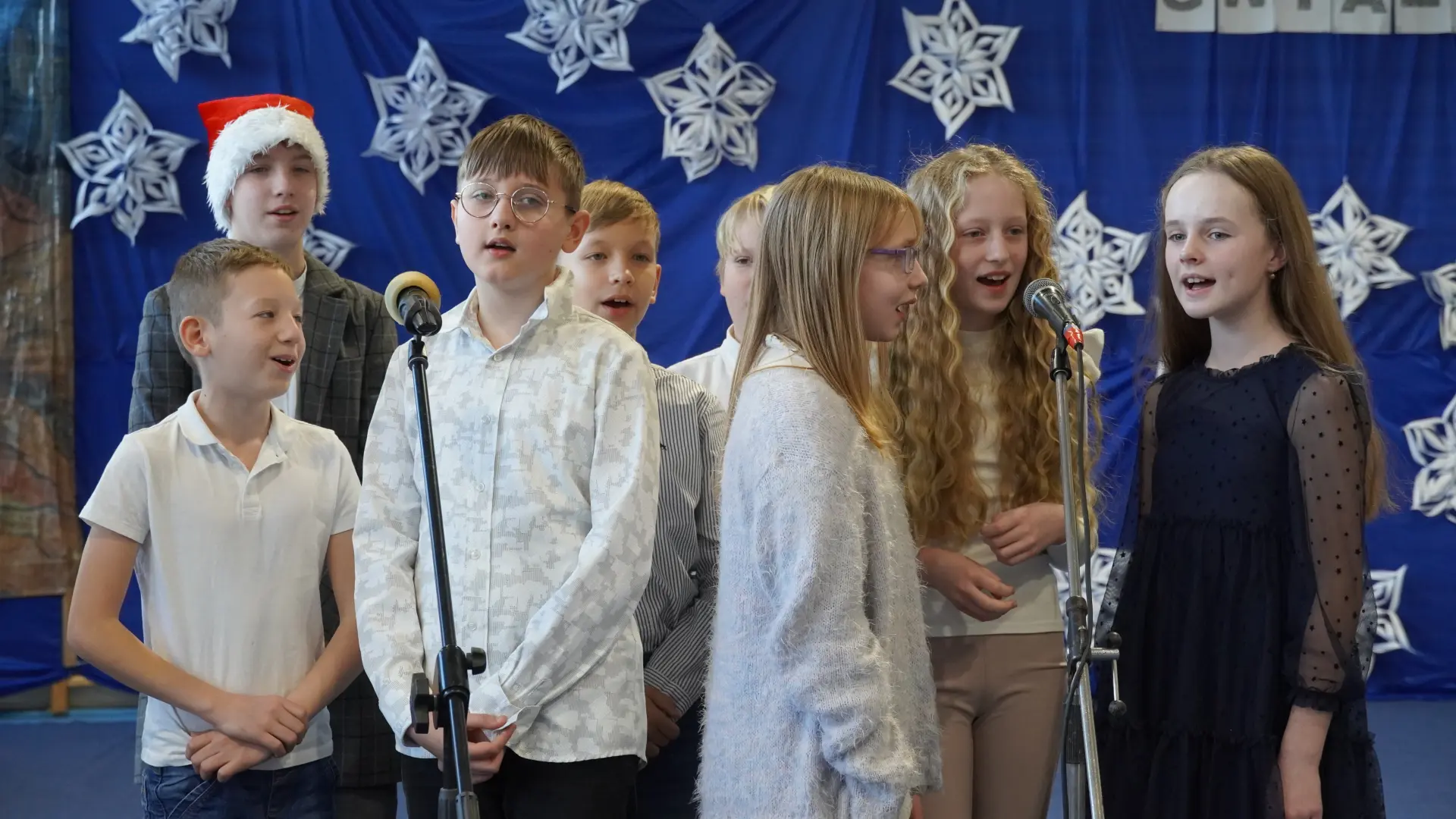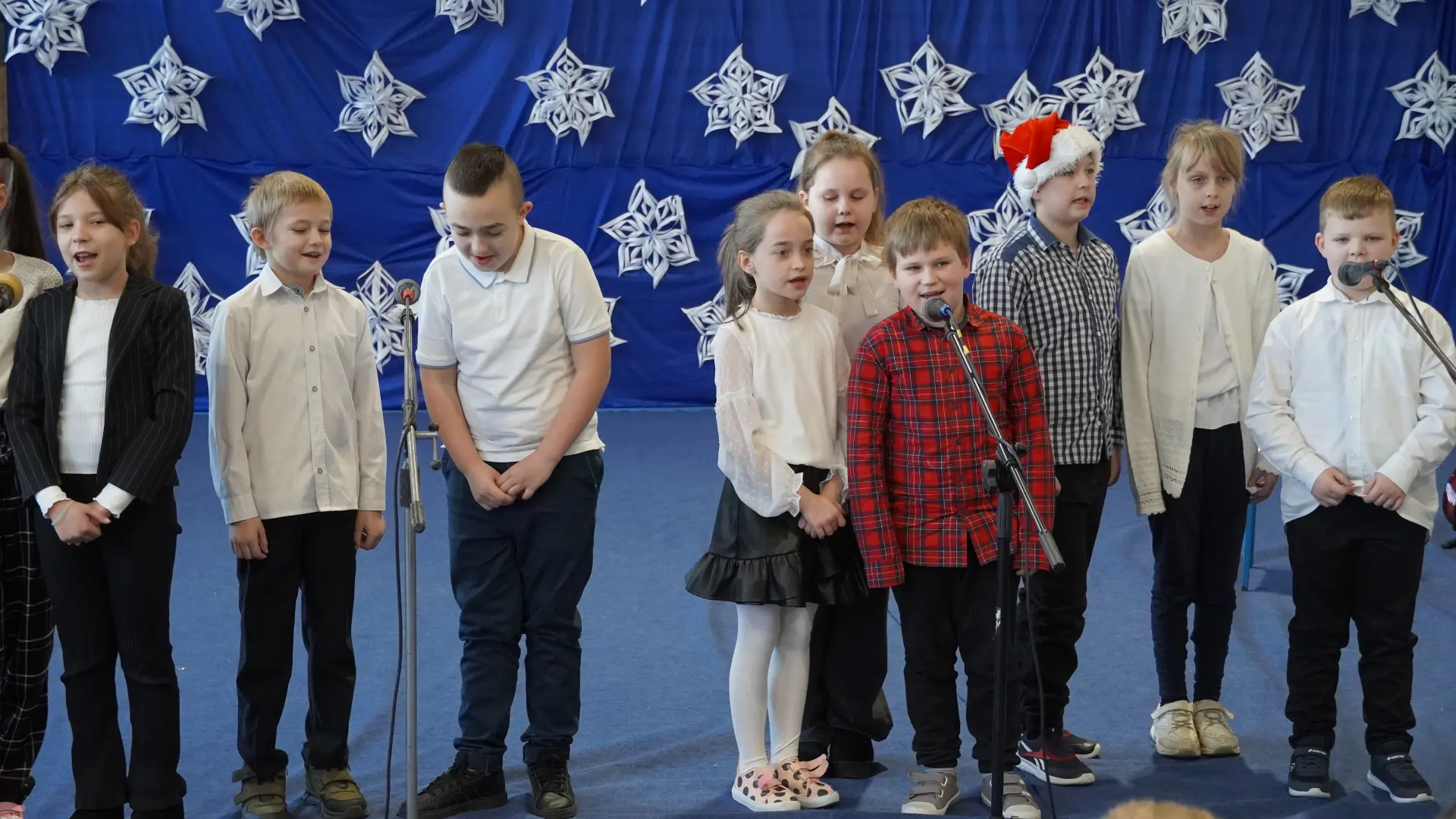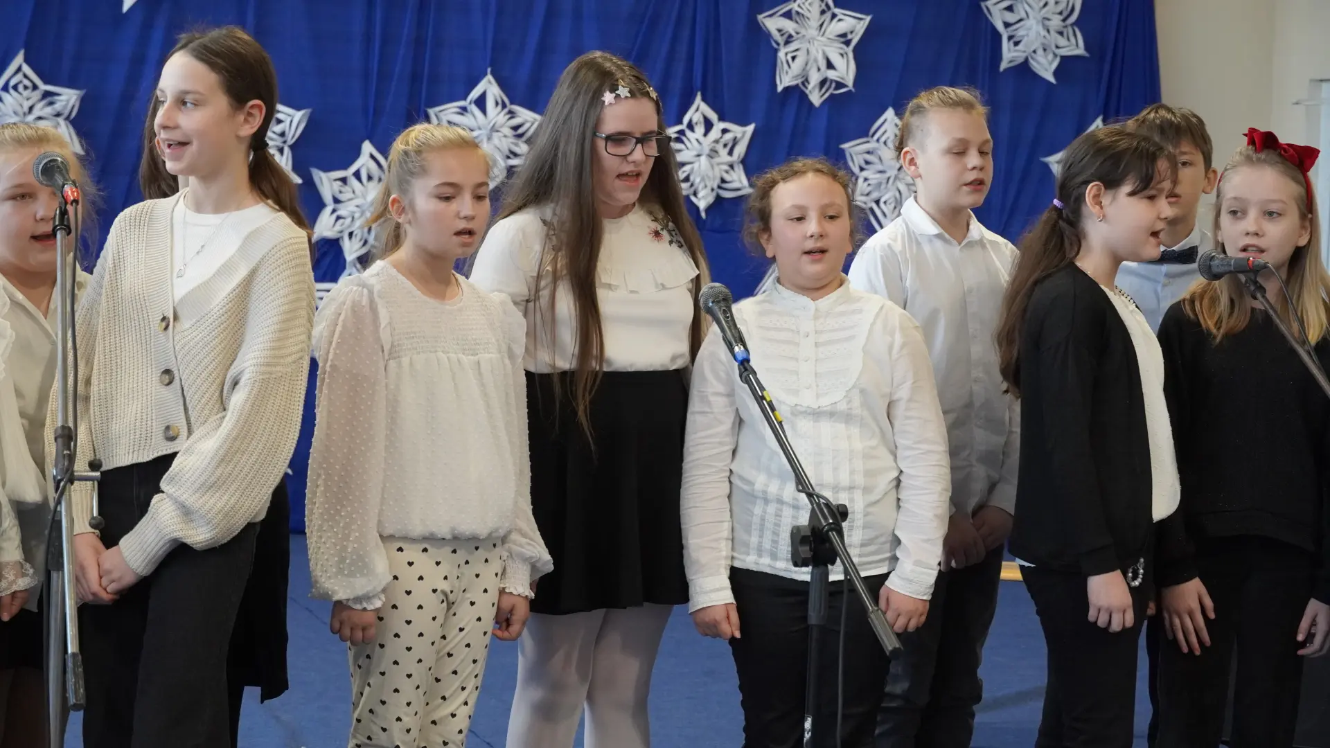 Tegoroczne spotkanie upłynęło pod znakiem kolęd i pastorałek. Na scenie wystąpili uczniowie naszej szkoły, prezentując przygotowane utwory. Rozbrzmiały znane i lubiane polskie kolędy, m.in. „Wśród nocnej ciszy”, „Przybieżeli do Betlejem pasterze”, „Gdy śliczna Panna”, „Cicha noc” oraz „Gdy się Chrystus rodzi”. Wspólne śpiewanie stworzyło ciepłą, radosną atmosferę i pozwoliło na chwilę zatrzymać się w codziennym pośpiechu.