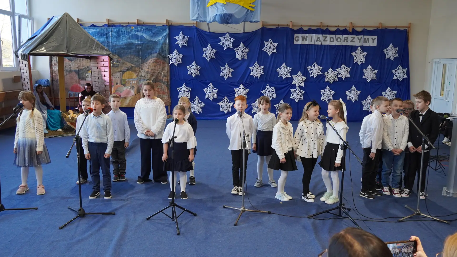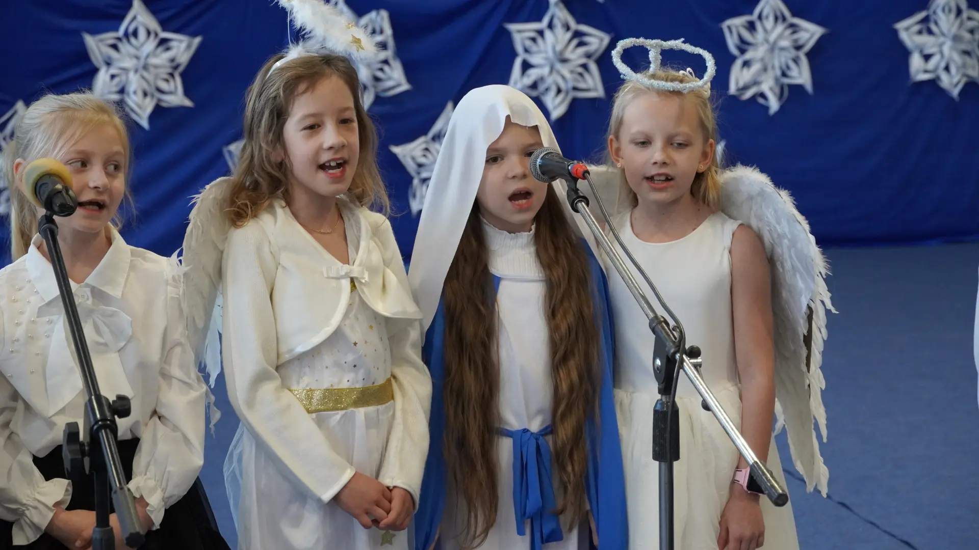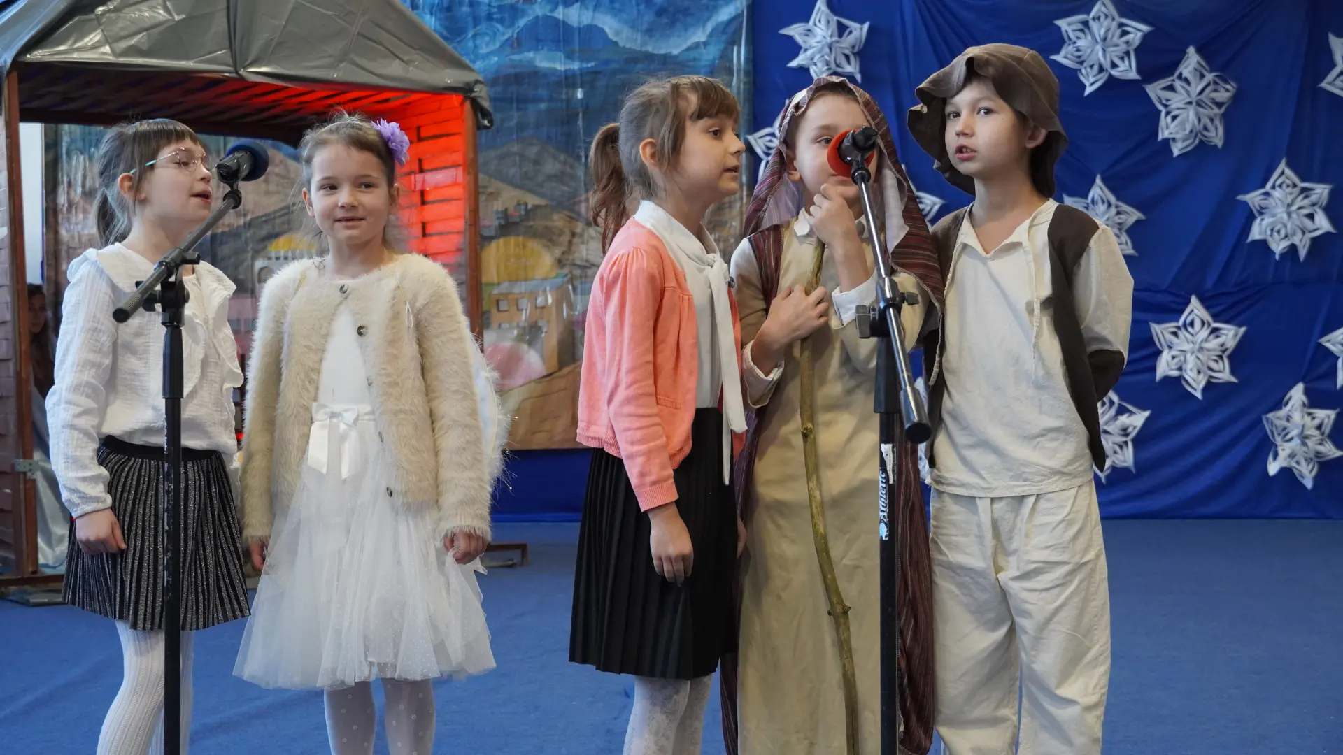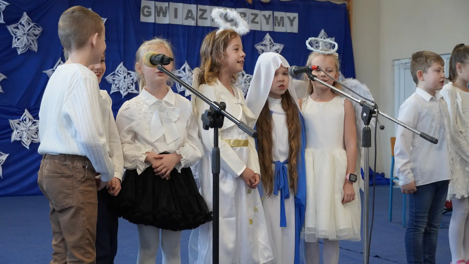 Tegoroczne spotkanie upłynęło pod znakiem kolęd i pastorałek. Na scenie wystąpili uczniowie naszej szkoły, prezentując przygotowane utwory. Rozbrzmiały znane i lubiane polskie kolędy, m.in. „Wśród nocnej ciszy”, „Przybieżeli do Betlejem pasterze”, „Gdy śliczna Panna”, „Cicha noc” oraz „Gdy się Chrystus rodzi”. Wspólne śpiewanie stworzyło ciepłą, radosną atmosferę i pozwoliło na chwilę zatrzymać się w codziennym pośpiechu.