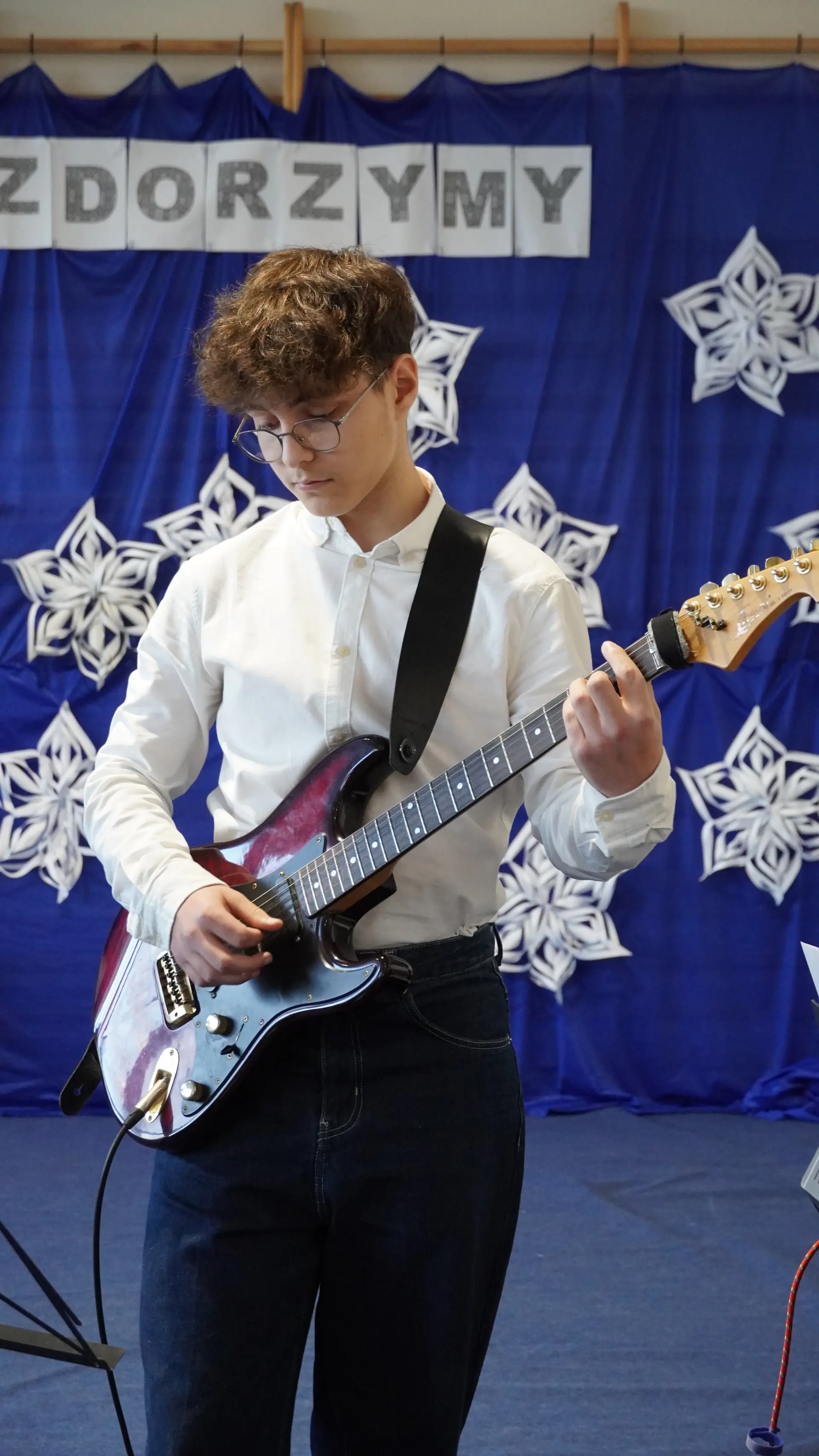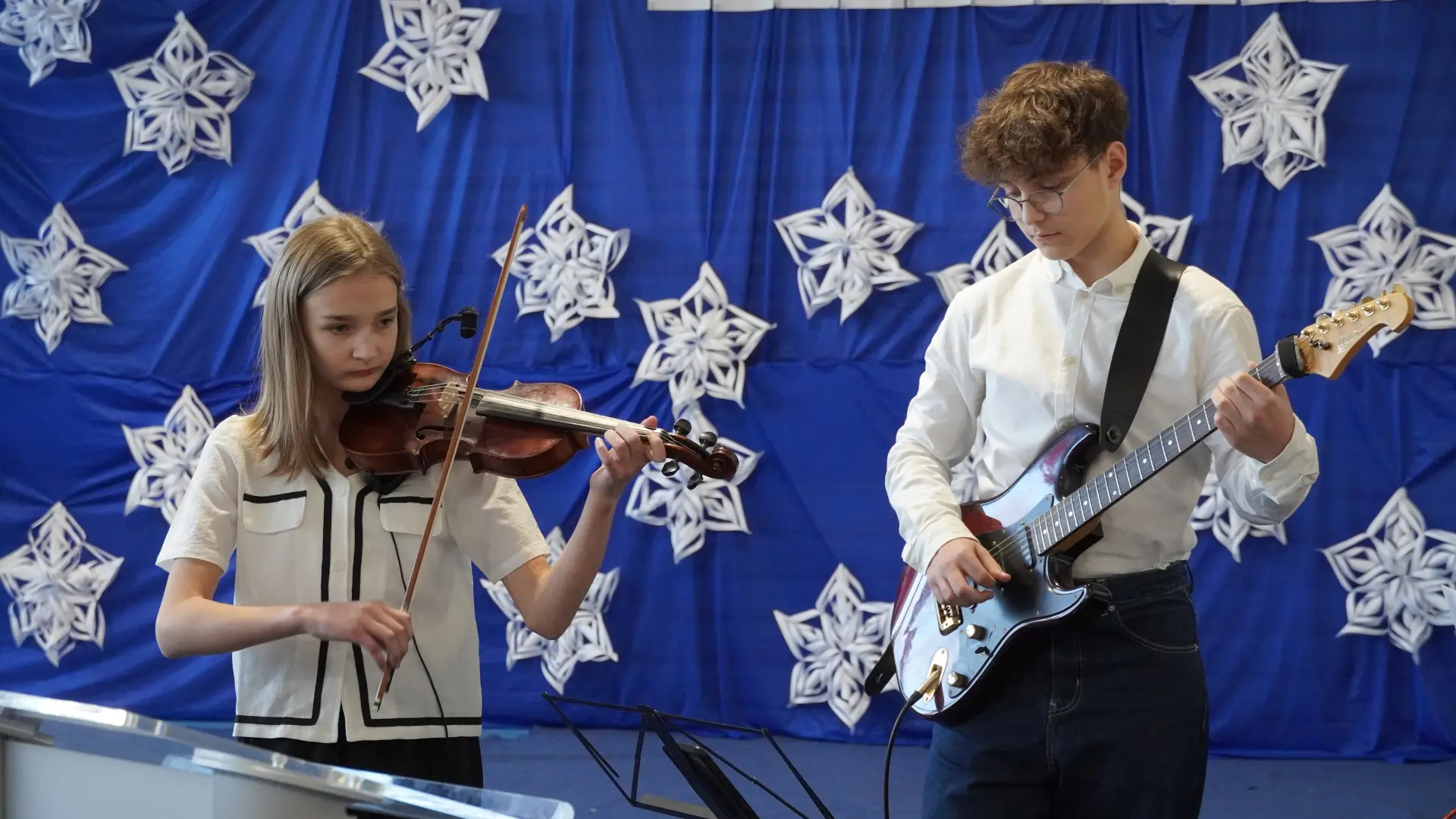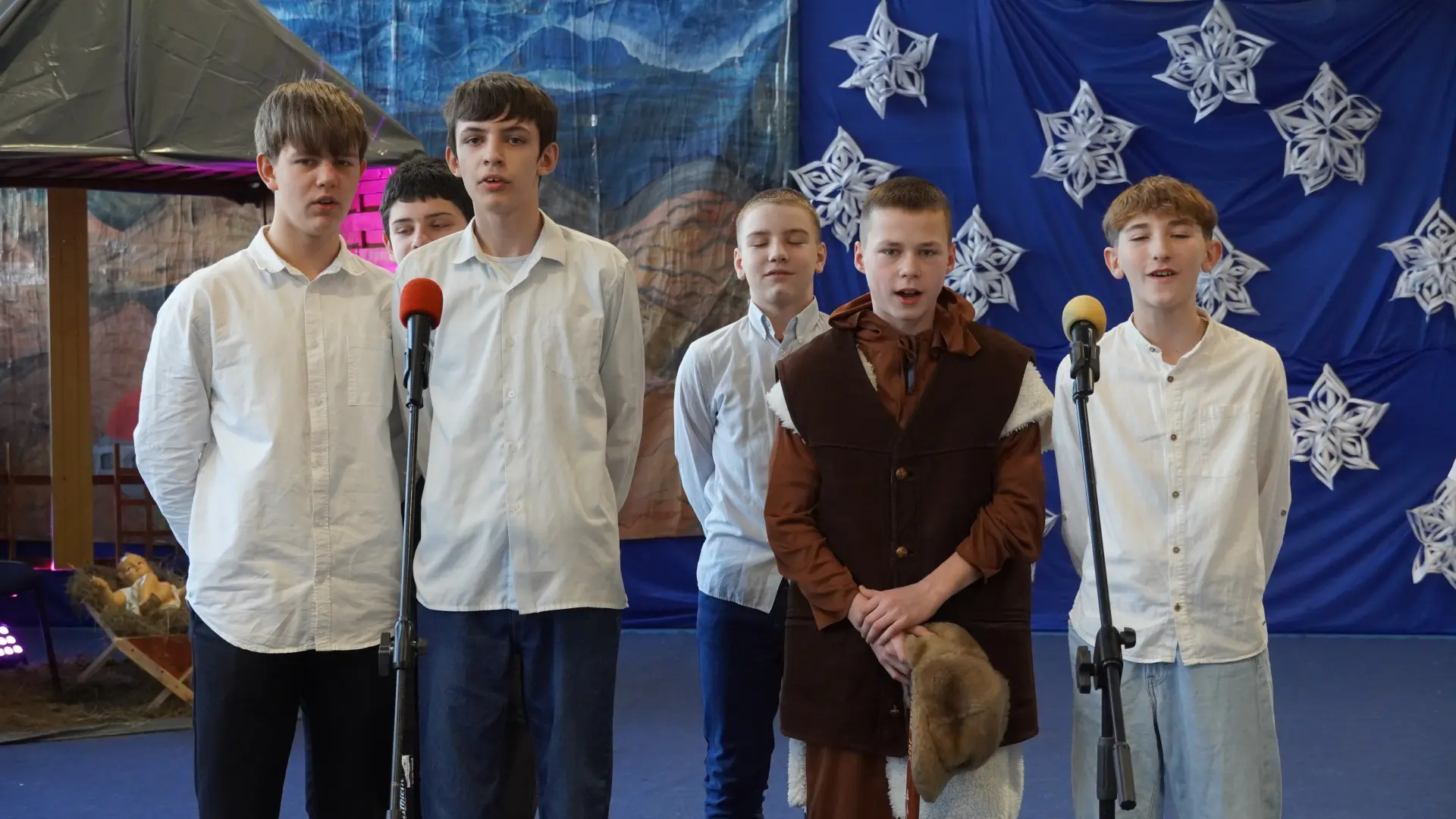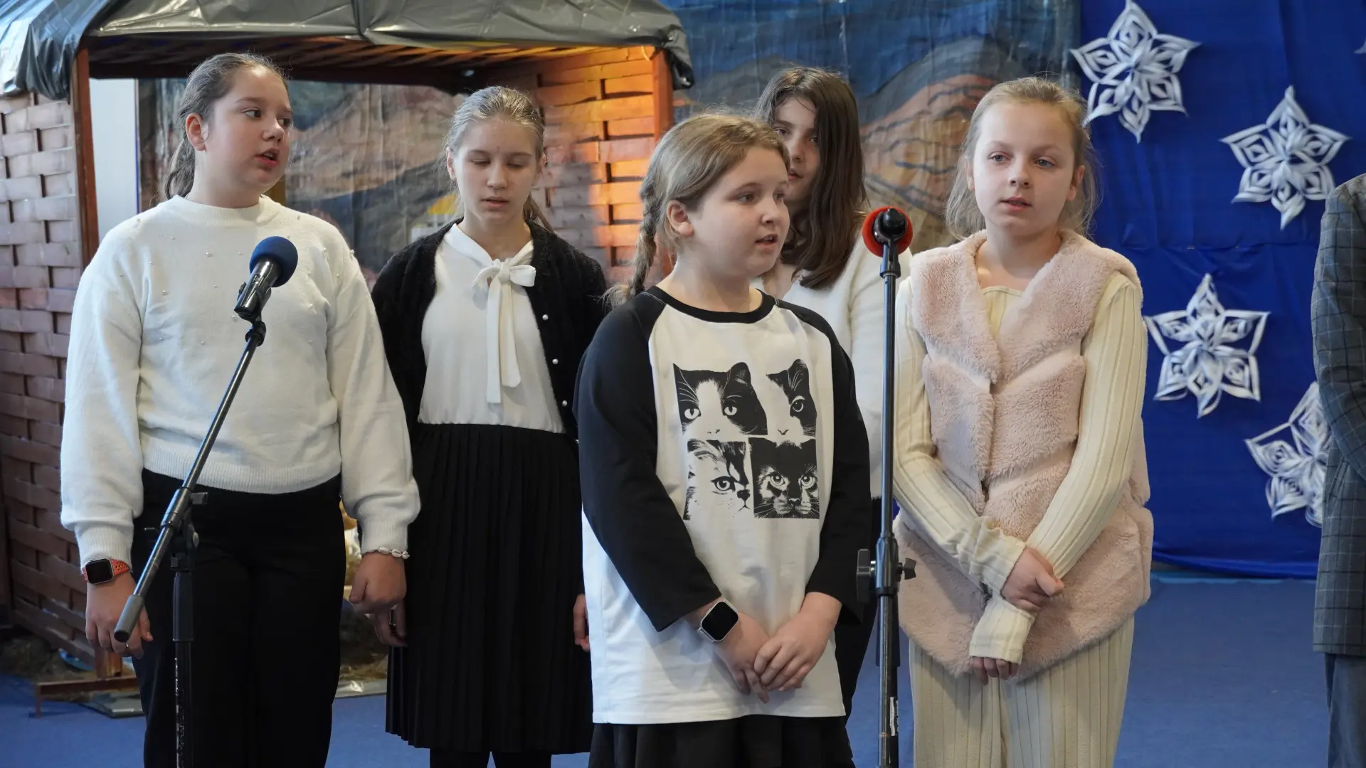 Tegoroczne spotkanie upłynęło pod znakiem kolęd i pastorałek. Na scenie wystąpili uczniowie naszej szkoły, prezentując przygotowane utwory. Rozbrzmiały znane i lubiane polskie kolędy, m.in. „Wśród nocnej ciszy”, „Przybieżeli do Betlejem pasterze”, „Gdy śliczna Panna”, „Cicha noc” oraz „Gdy się Chrystus rodzi”. Wspólne śpiewanie stworzyło ciepłą, radosną atmosferę i pozwoliło na chwilę zatrzymać się w codziennym pośpiechu.