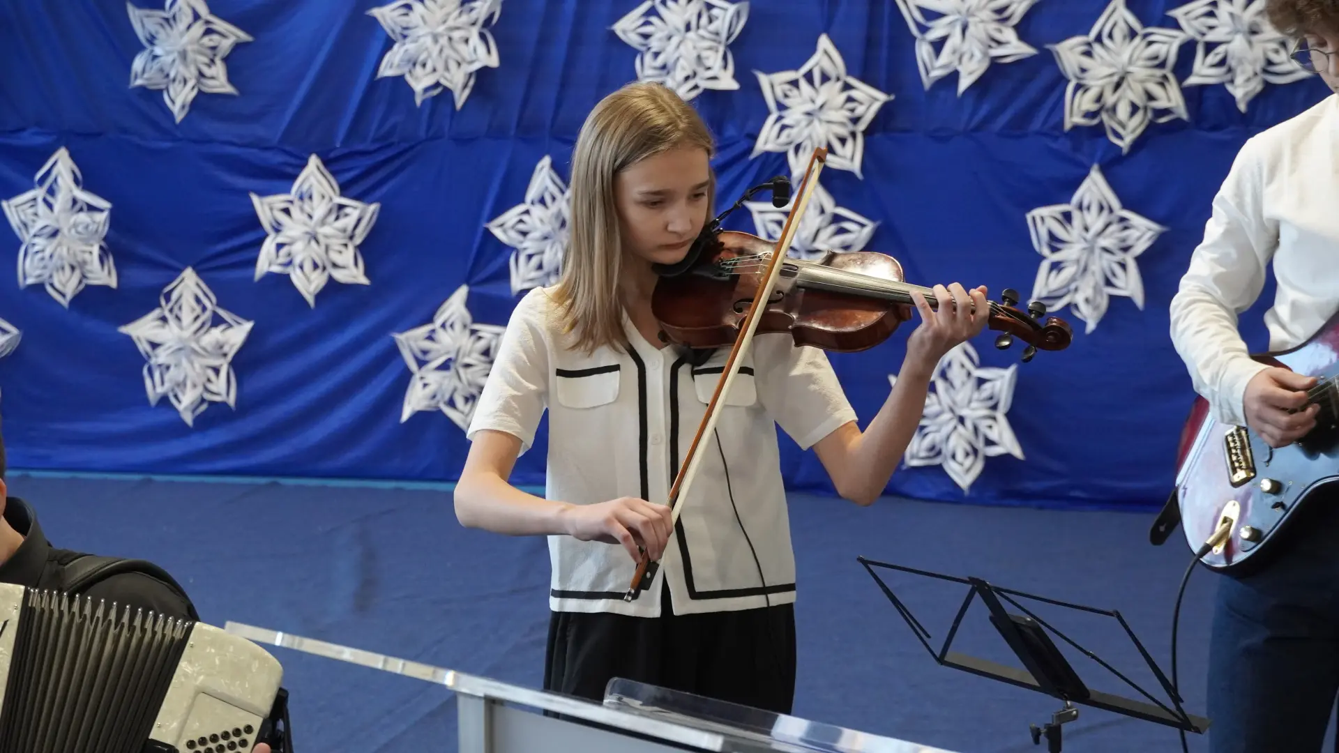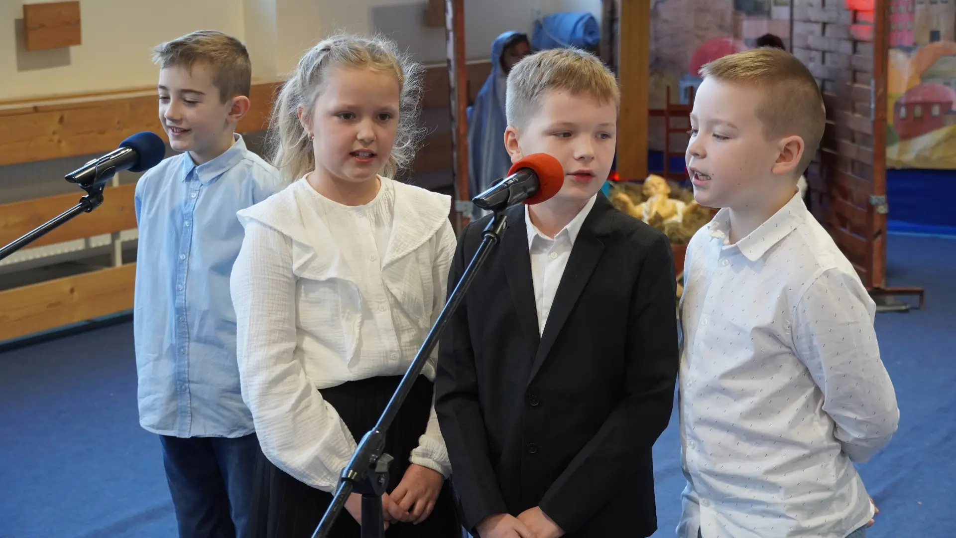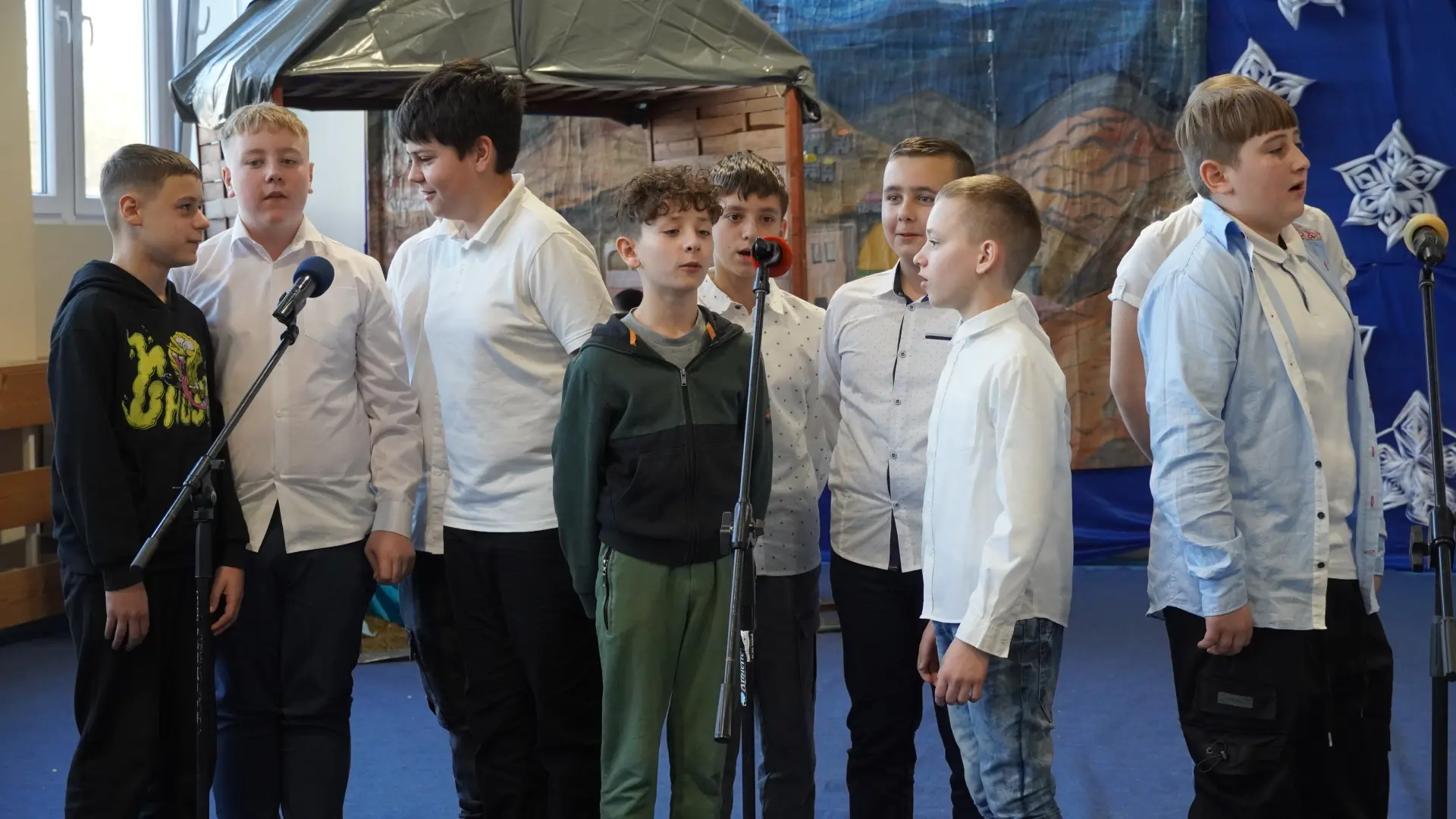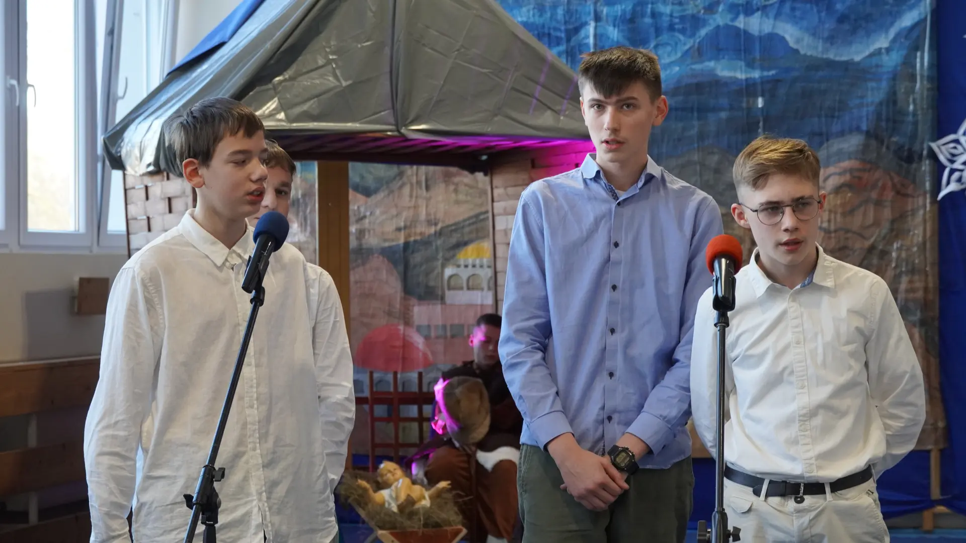 Tegoroczne spotkanie upłynęło pod znakiem kolęd i pastorałek. Na scenie wystąpili uczniowie naszej szkoły, prezentując przygotowane utwory. Rozbrzmiały znane i lubiane polskie kolędy, m.in. „Wśród nocnej ciszy”, „Przybieżeli do Betlejem pasterze”, „Gdy śliczna Panna”, „Cicha noc” oraz „Gdy się Chrystus rodzi”. Wspólne śpiewanie stworzyło ciepłą, radosną atmosferę i pozwoliło na chwilę zatrzymać się w codziennym pośpiechu.