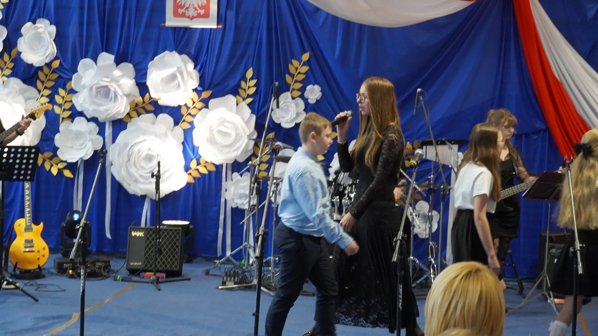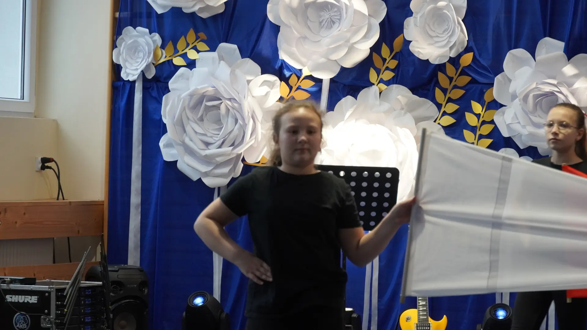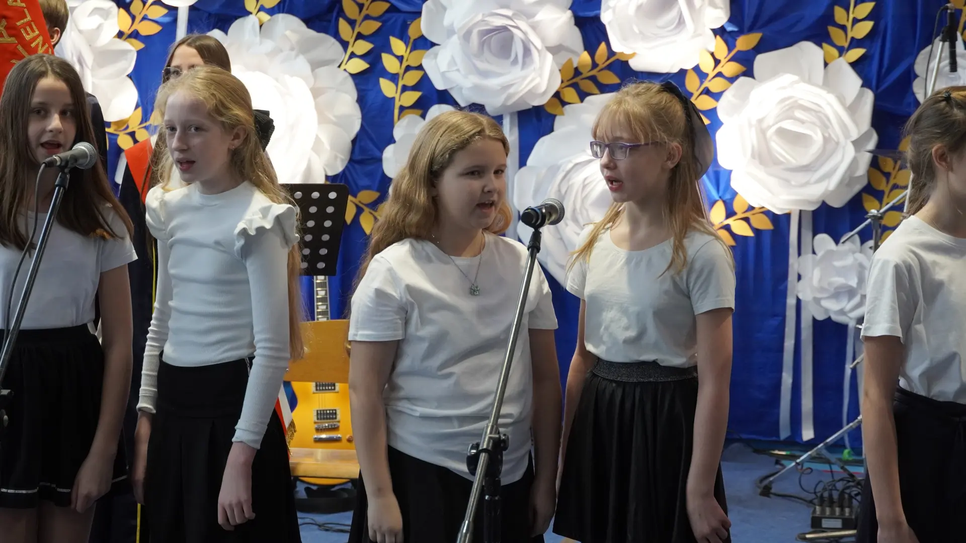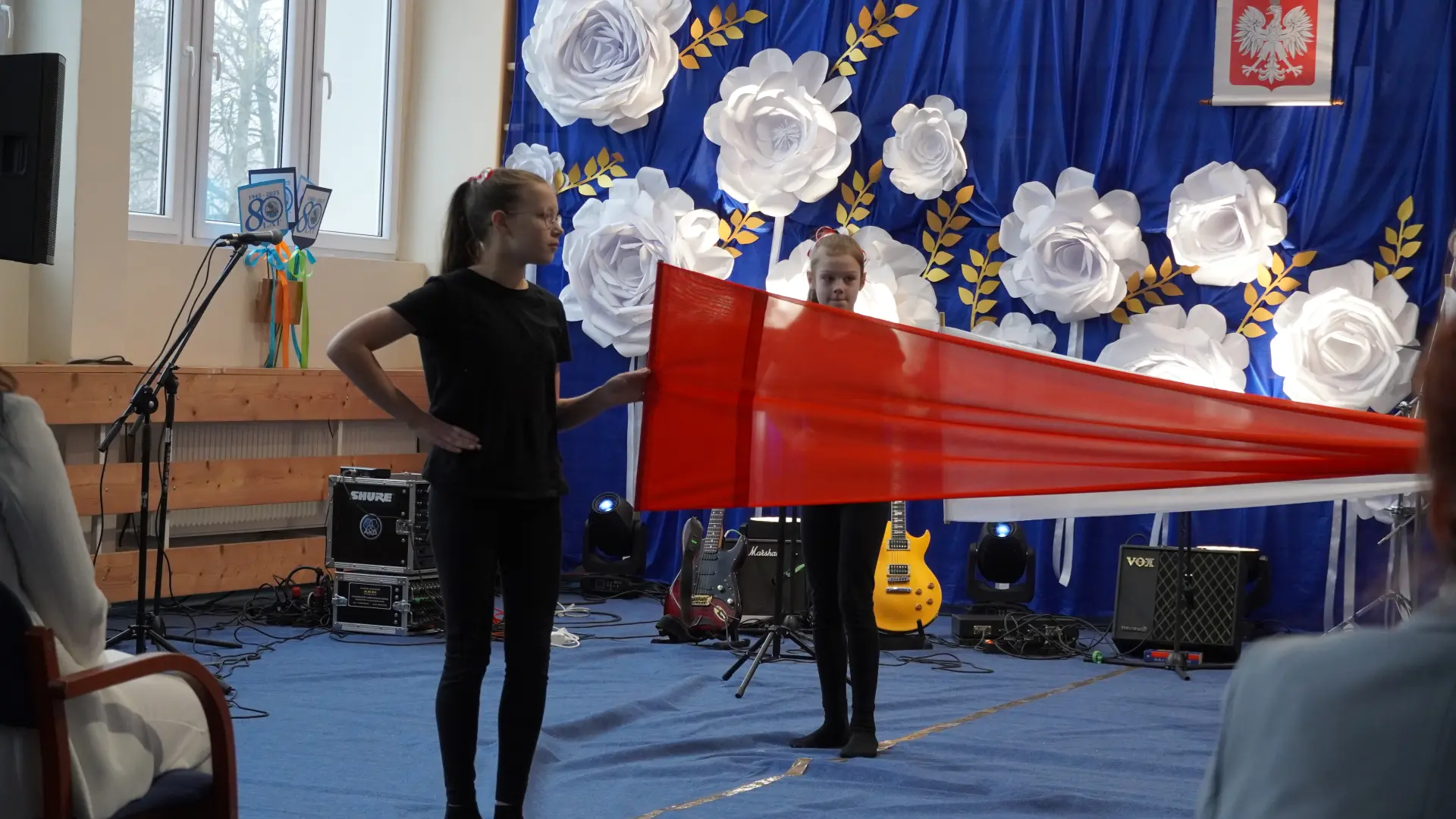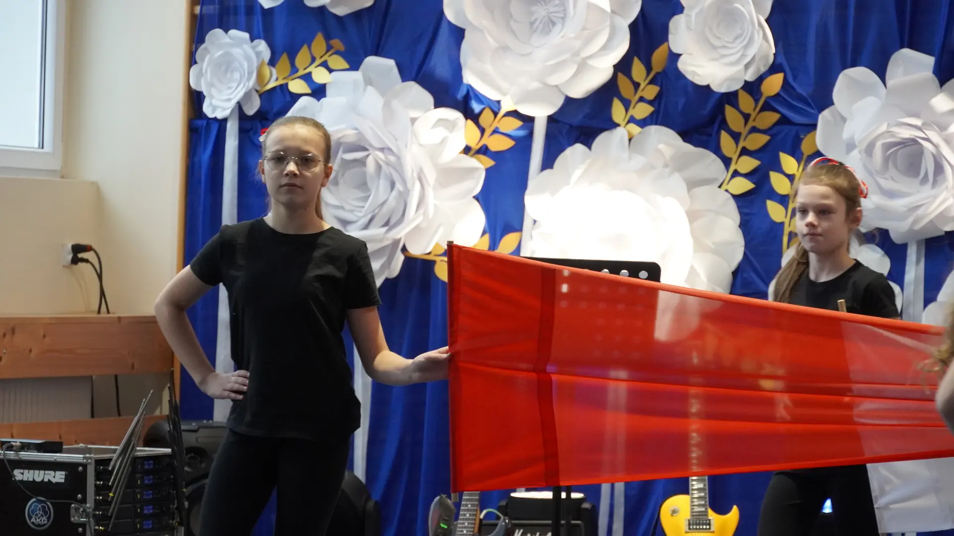 W uświetnieniu jubileuszu wzięły też udział maluszki z grupy przedszkolnej, które przypomniały charakterystyczne dla lat siedemdziesiątych wiersze oraz czwartoklasistki, które dostarczyły niezwykłych wrażeń „Tańcem flagi”.