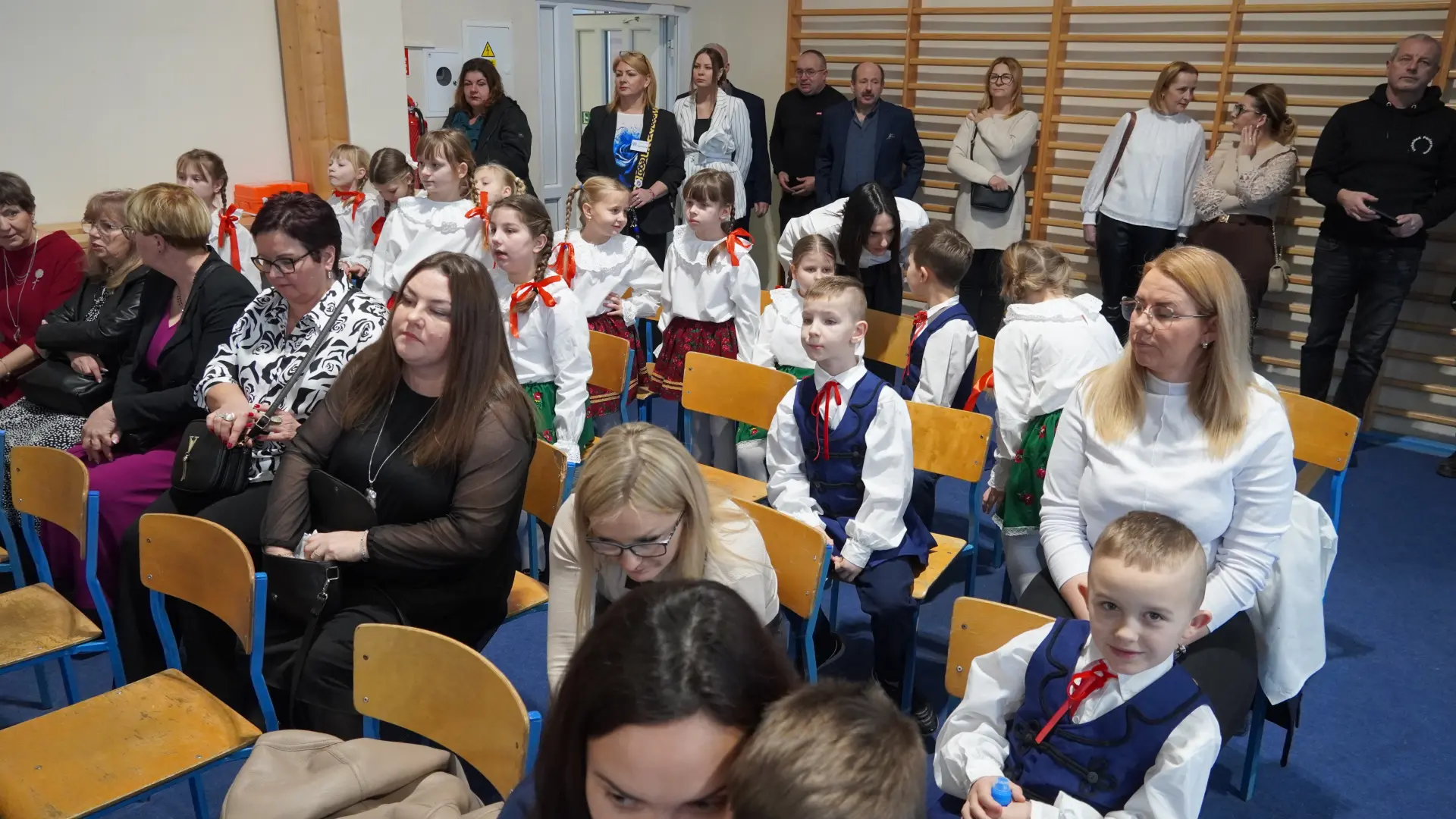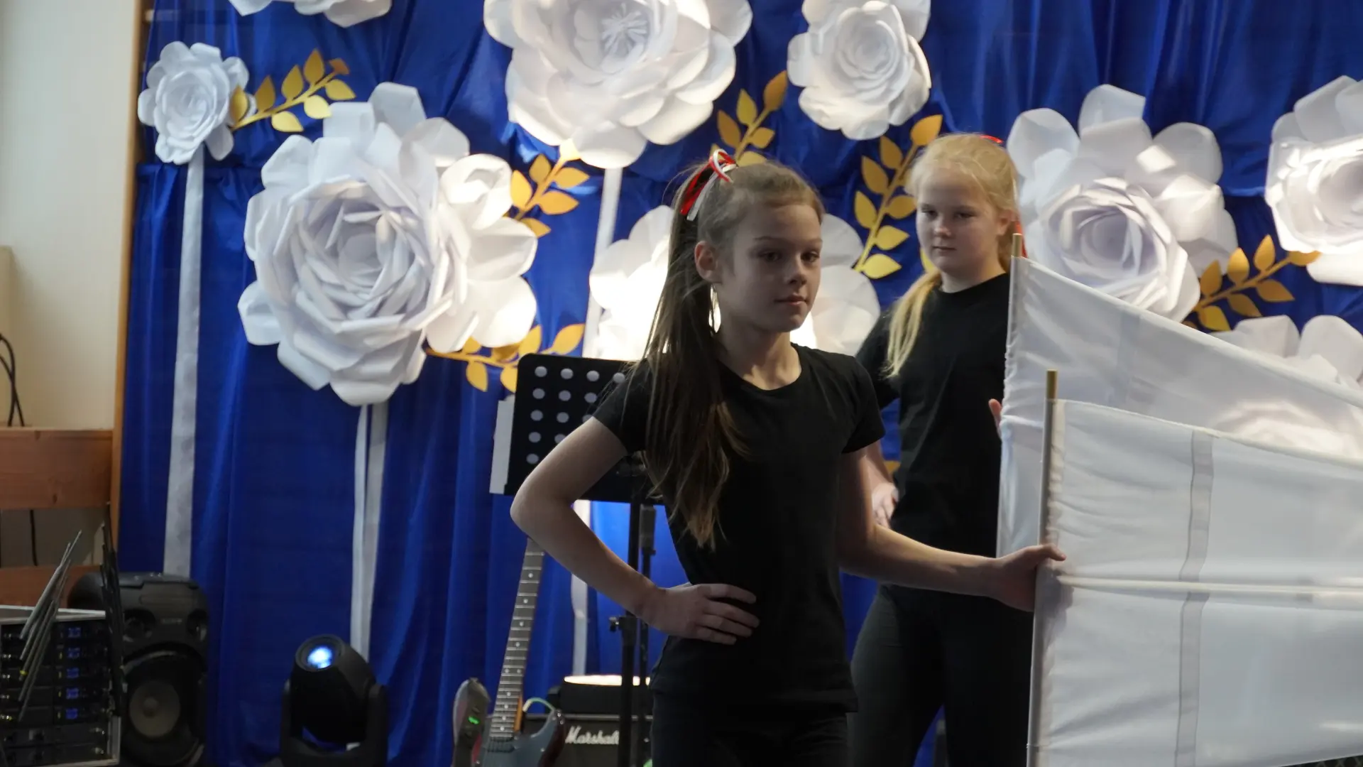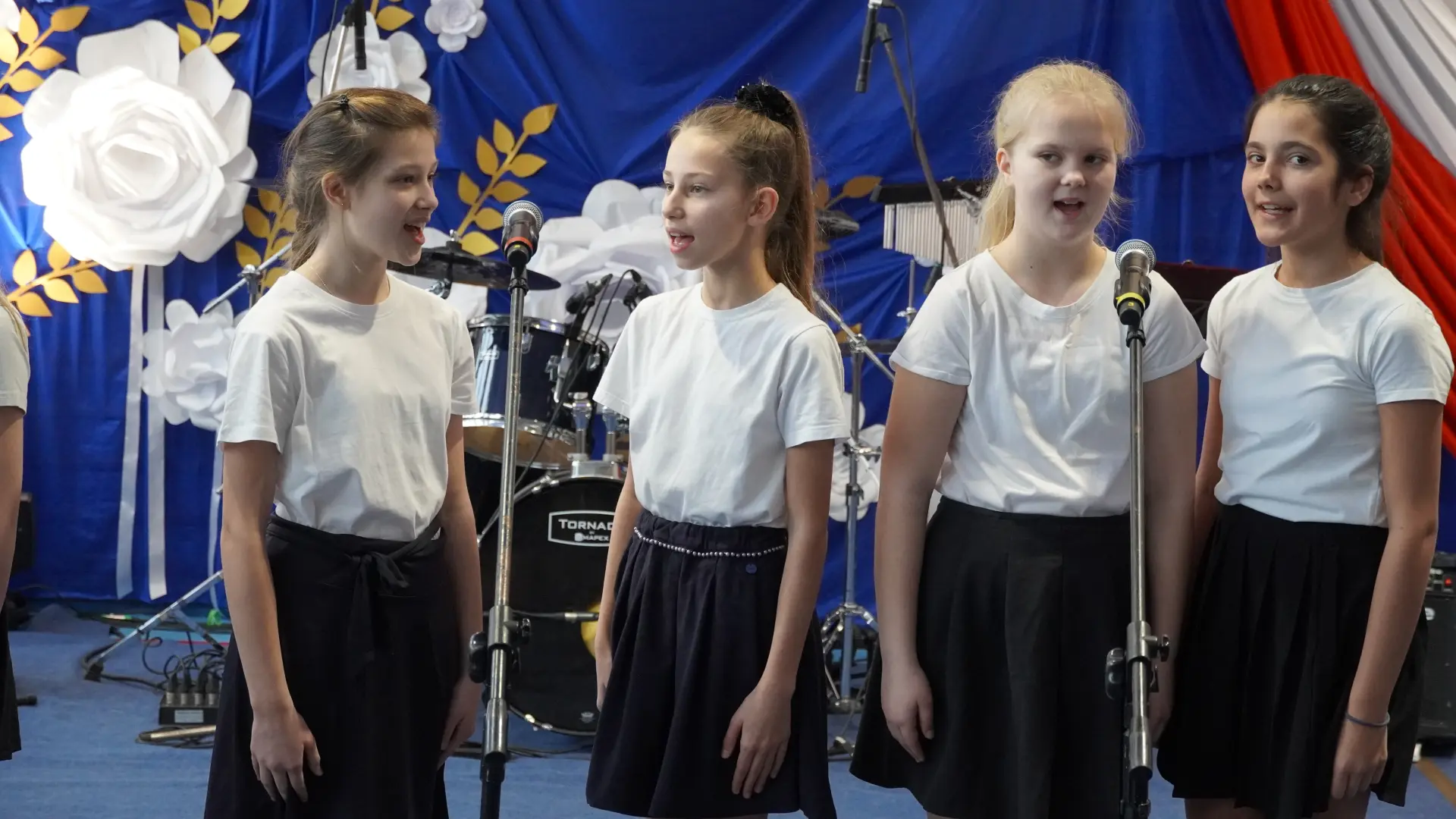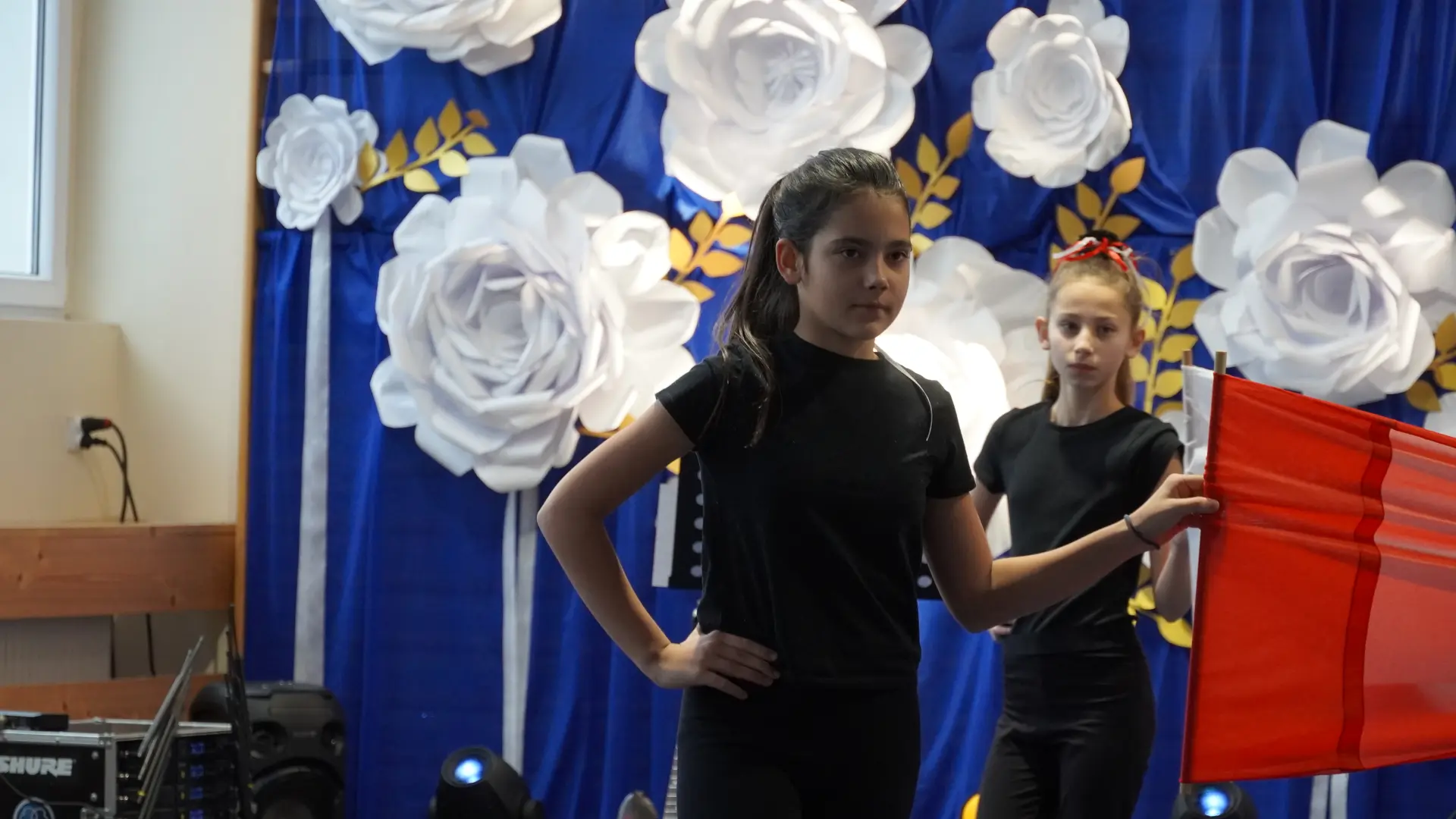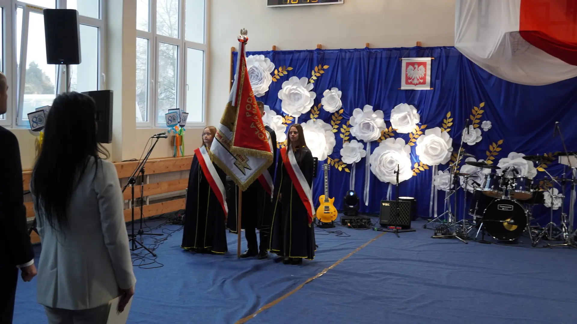 W uświetnieniu jubileuszu wzięły też udział maluszki z grupy przedszkolnej, które przypomniały charakterystyczne dla lat siedemdziesiątych wiersze oraz czwartoklasistki, które dostarczyły niezwykłych wrażeń „Tańcem flagi”.