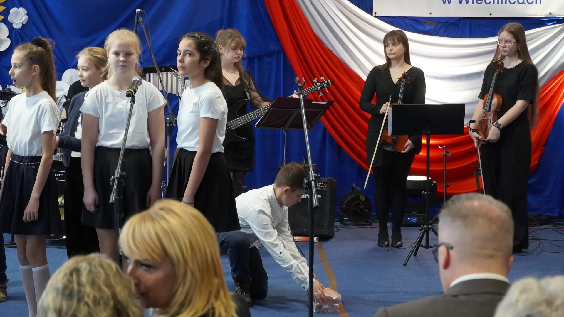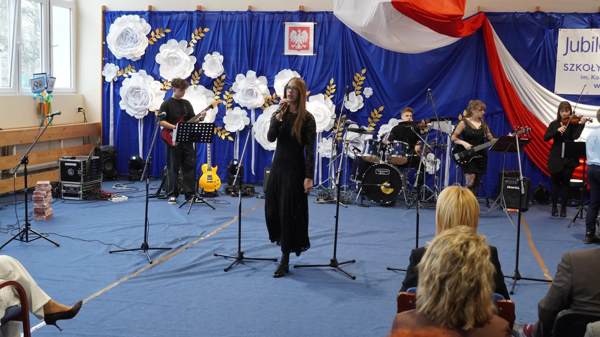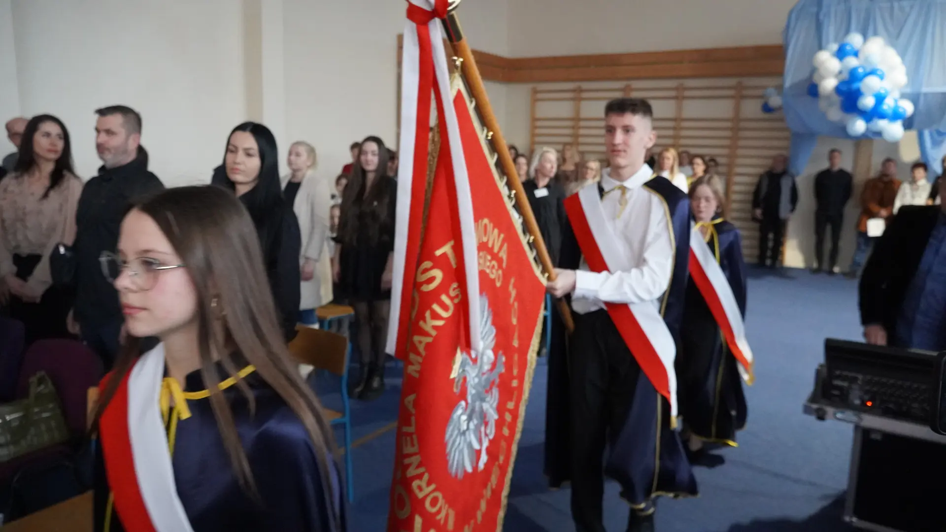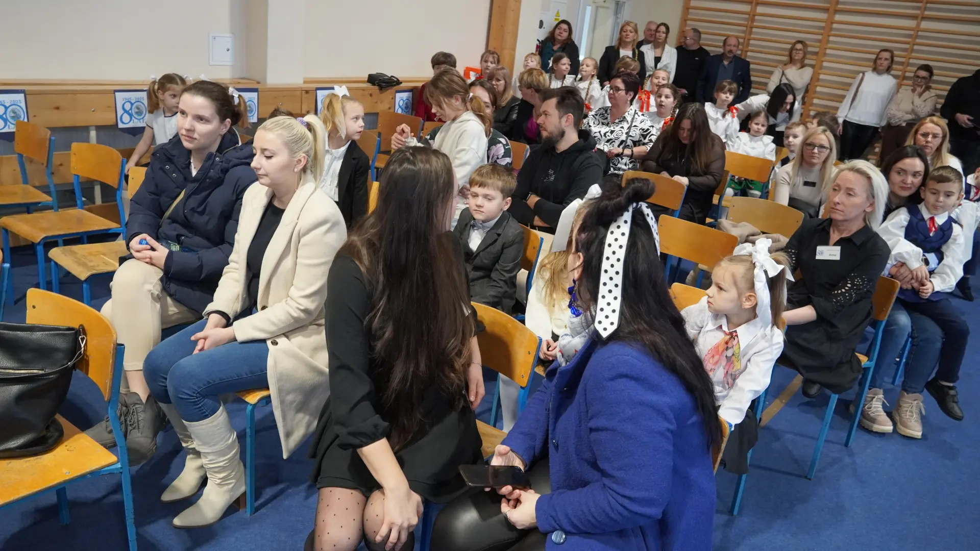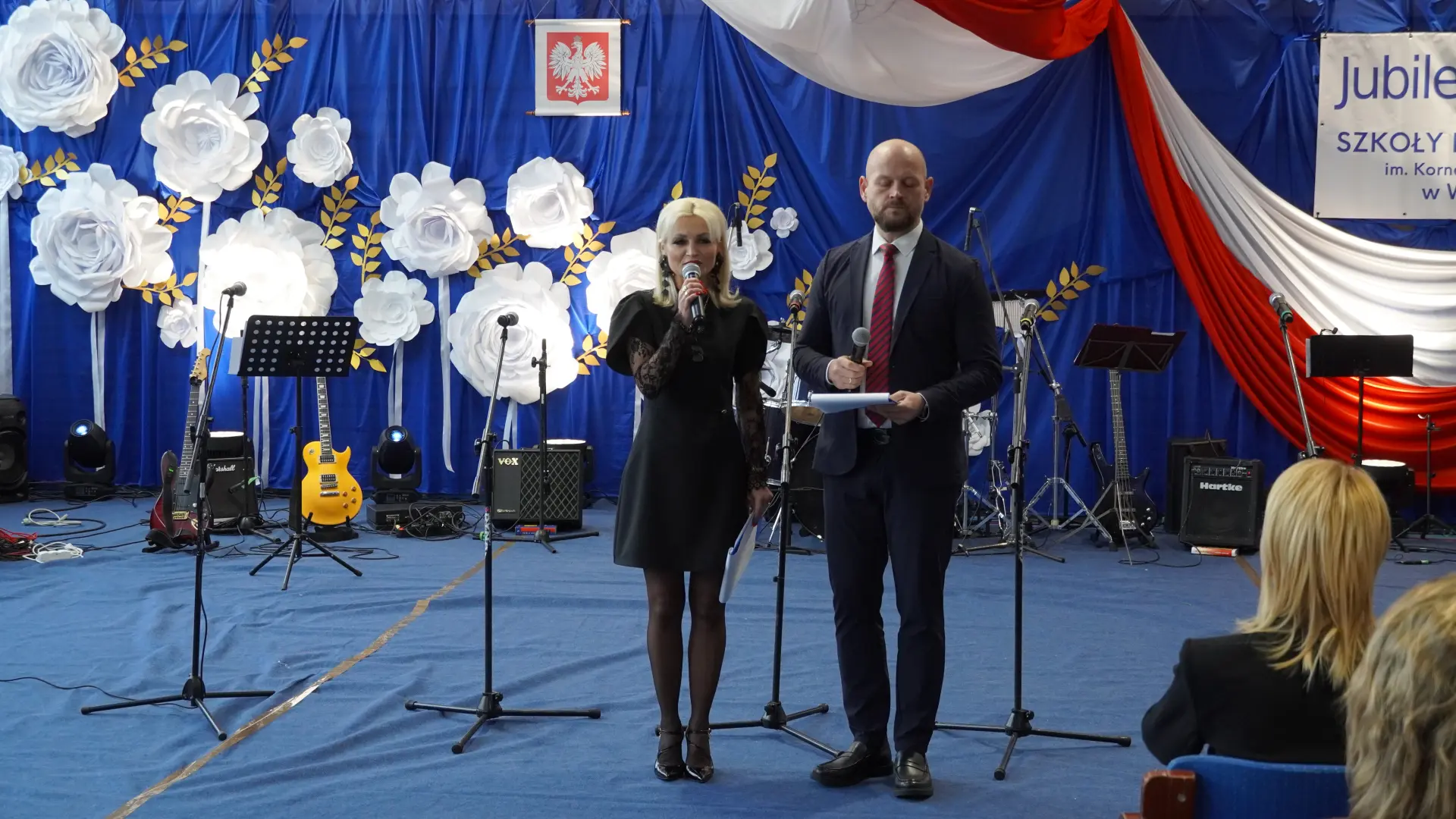 W uświetnieniu jubileuszu wzięły też udział maluszki z grupy przedszkolnej, które przypomniały charakterystyczne dla lat siedemdziesiątych wiersze oraz czwartoklasistki, które dostarczyły niezwykłych wrażeń „Tańcem flagi”.