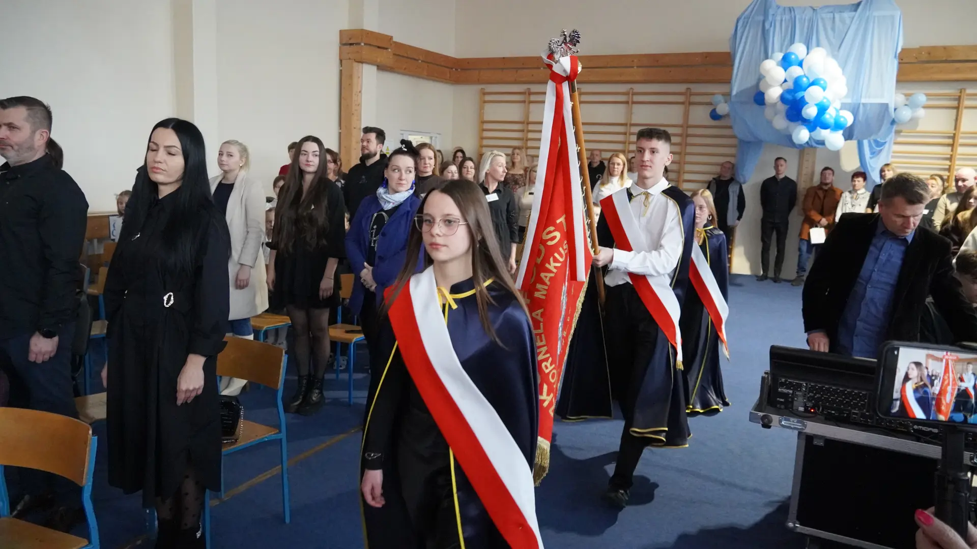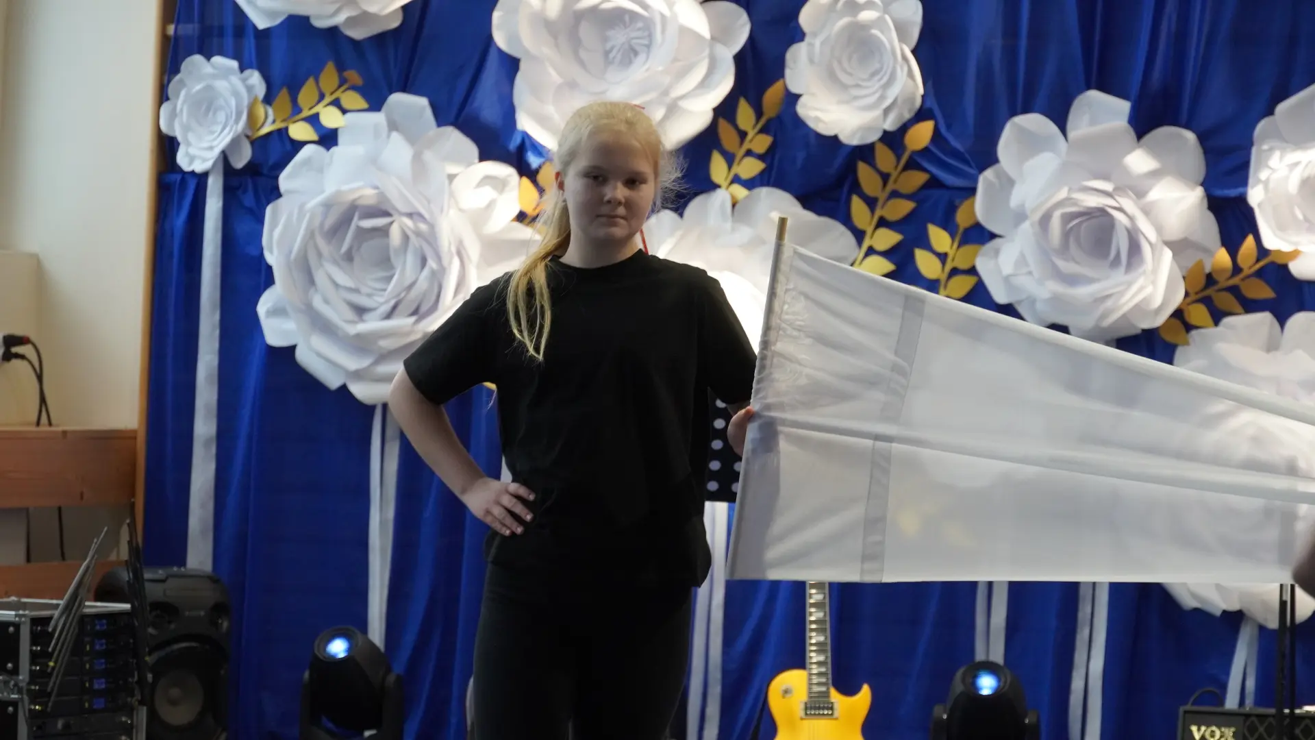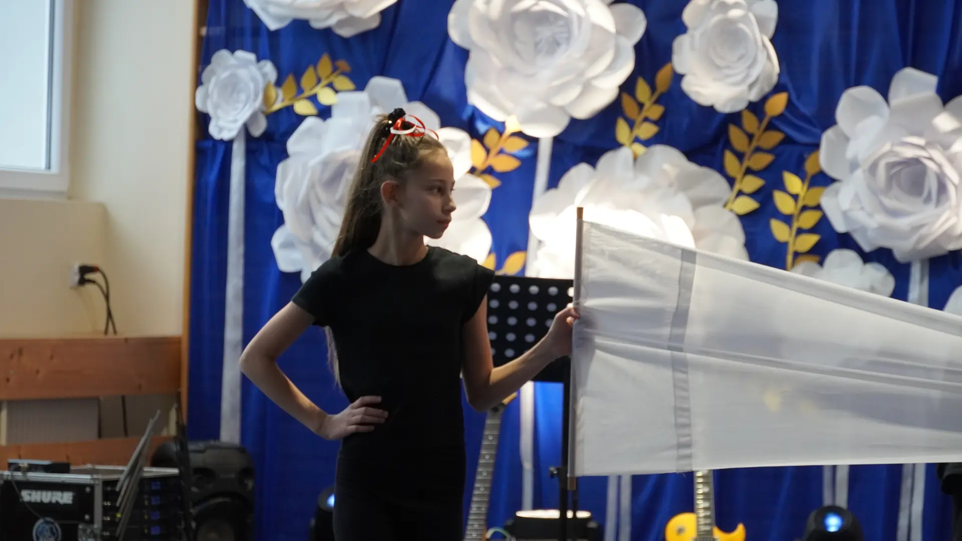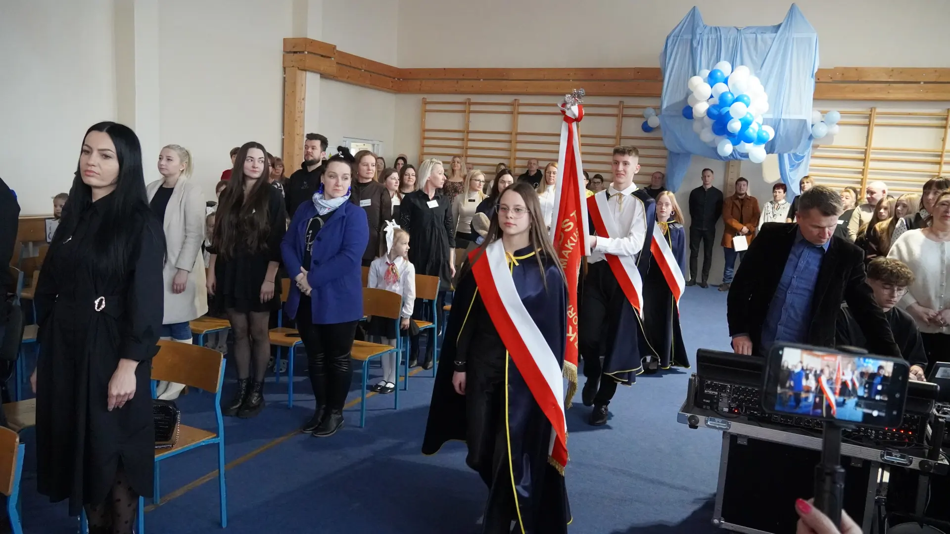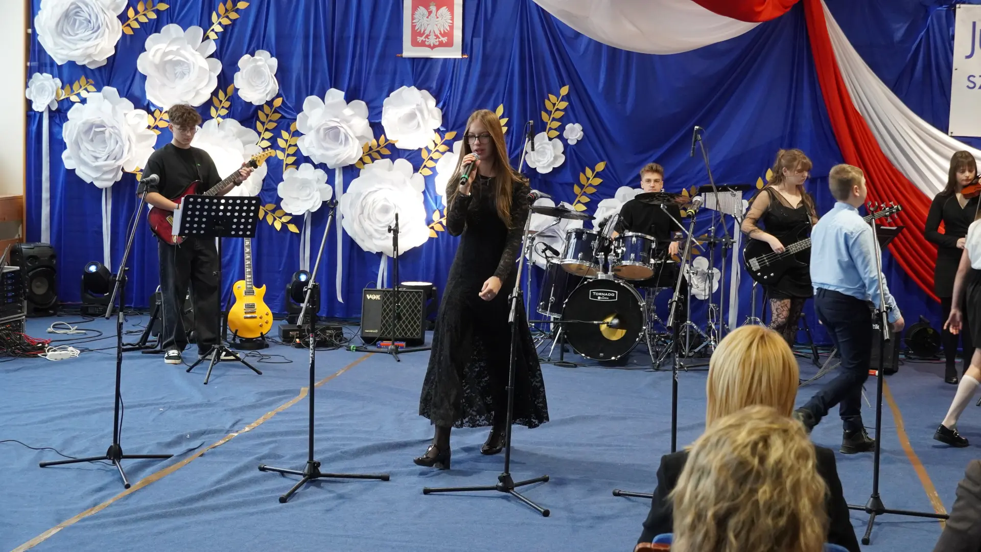 W uświetnieniu jubileuszu wzięły też udział maluszki z grupy przedszkolnej, które przypomniały charakterystyczne dla lat siedemdziesiątych wiersze oraz czwartoklasistki, które dostarczyły niezwykłych wrażeń „Tańcem flagi”.