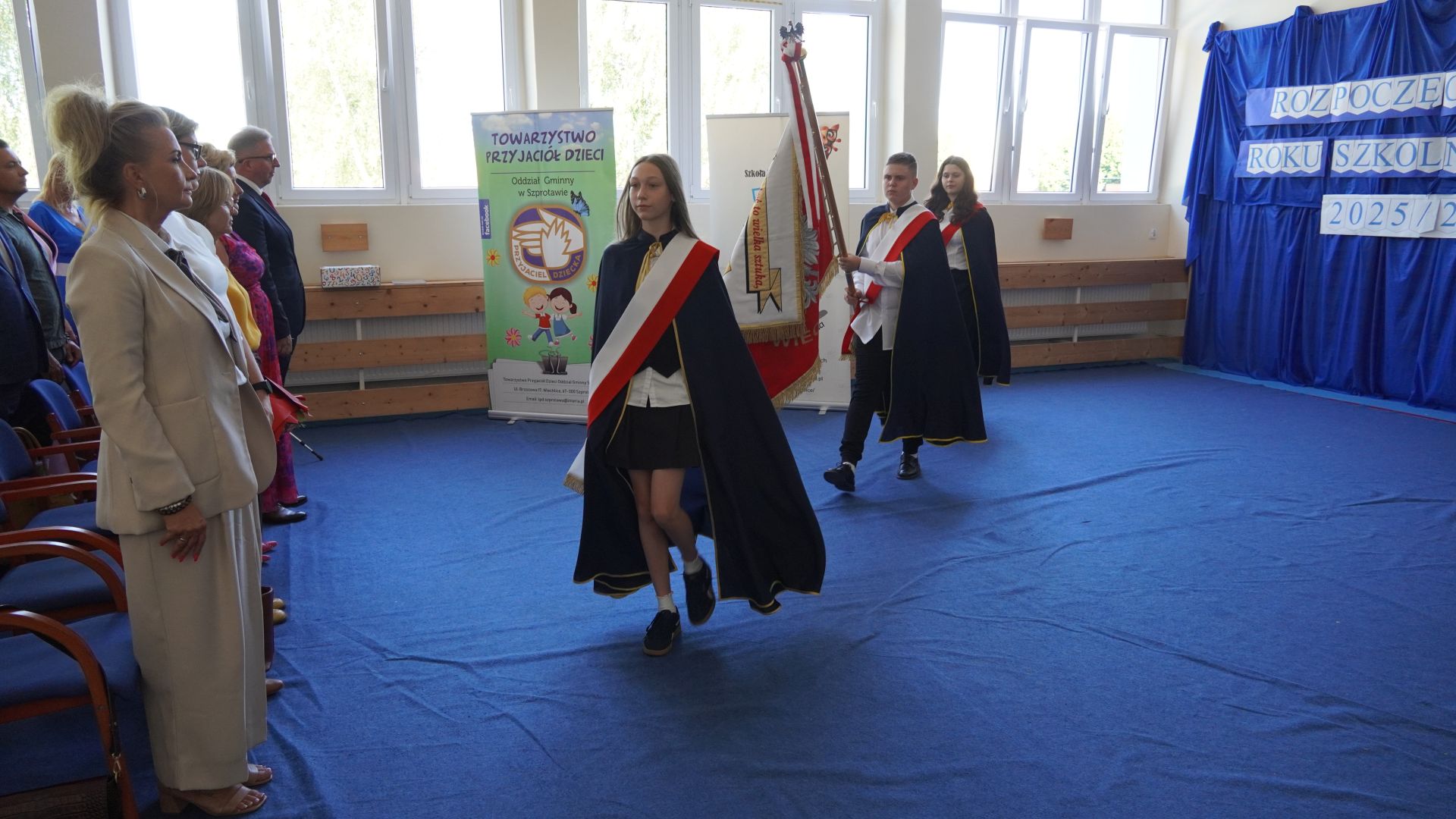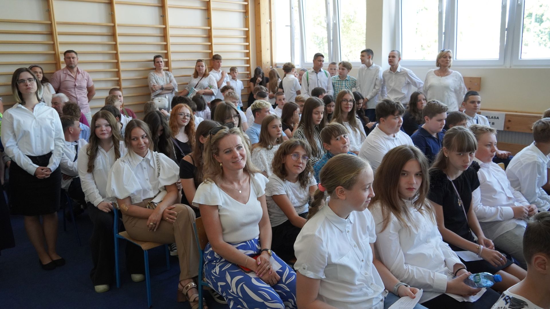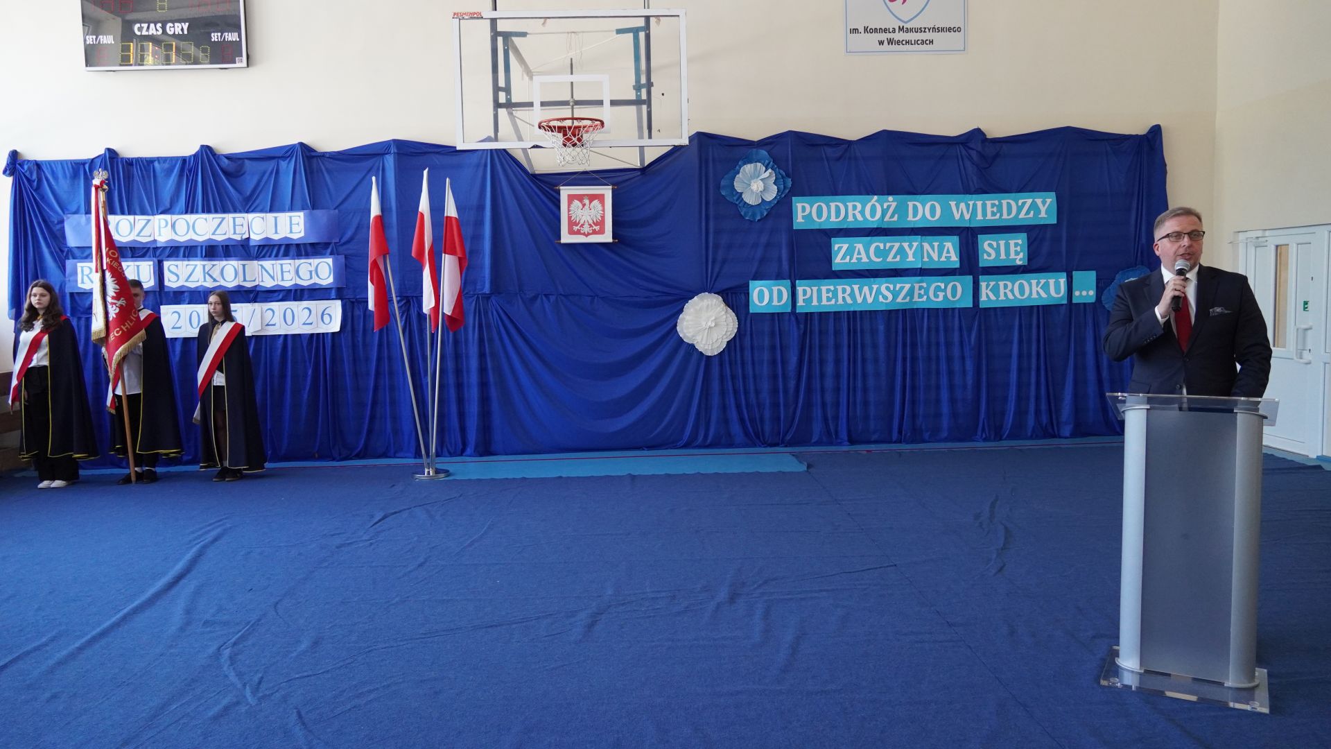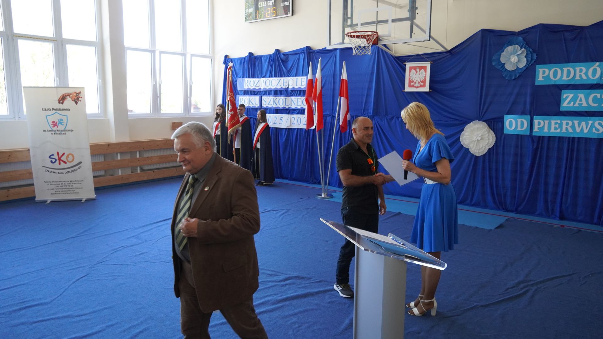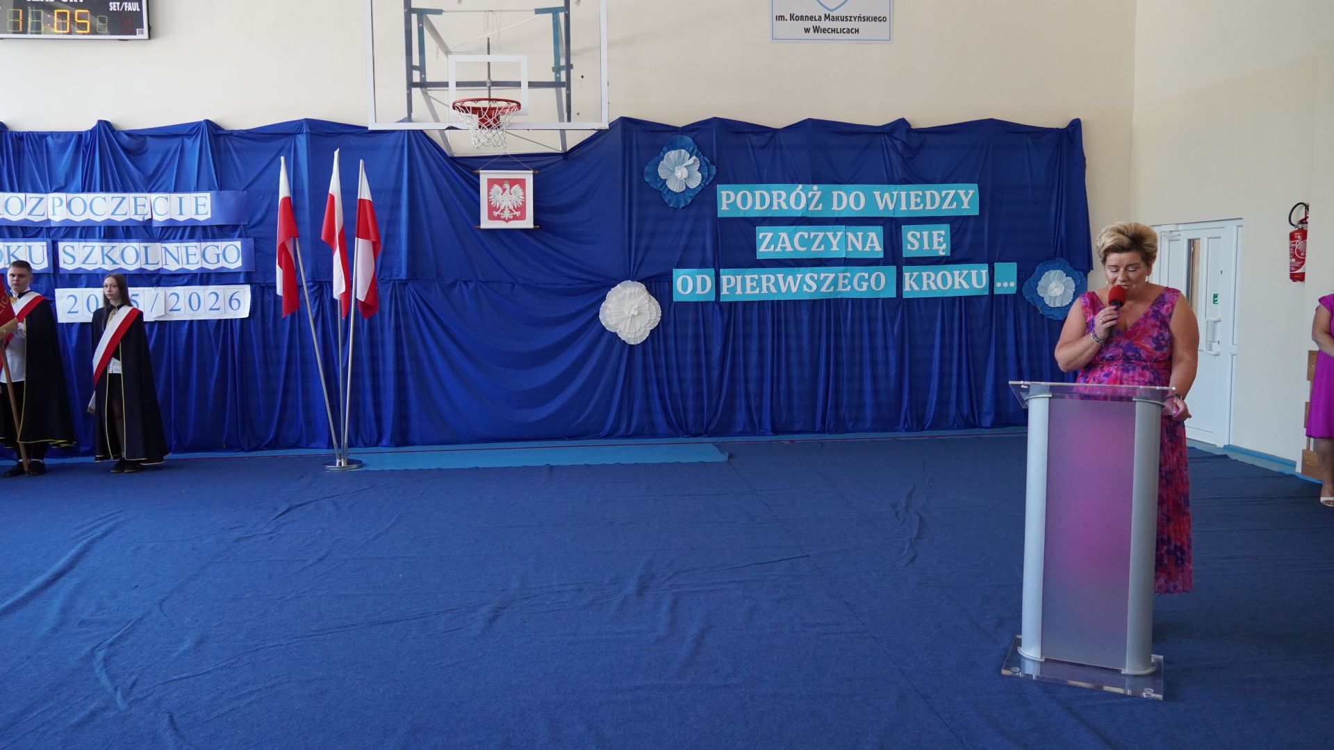 1 września br. odbyła się inauguracja nowego roku szkolnego, w której wzięli udział zaproszeni gości, rodzice, nauczyciele oraz uczniowie. Pani Gabriela Laudacka, dyrektor szkoły, serdecznie powitała wszystkich obecnych, ale najserdeczniej zwróciła się do nowych uczniów klasy I.