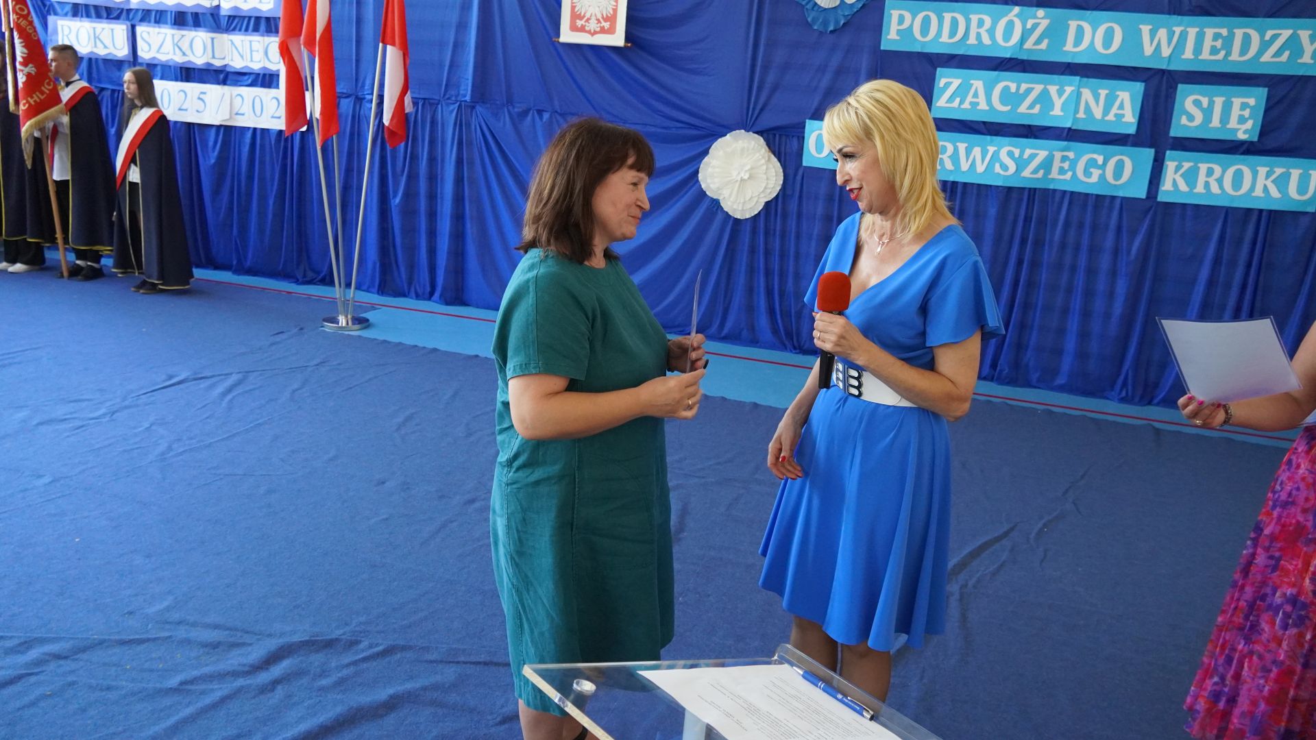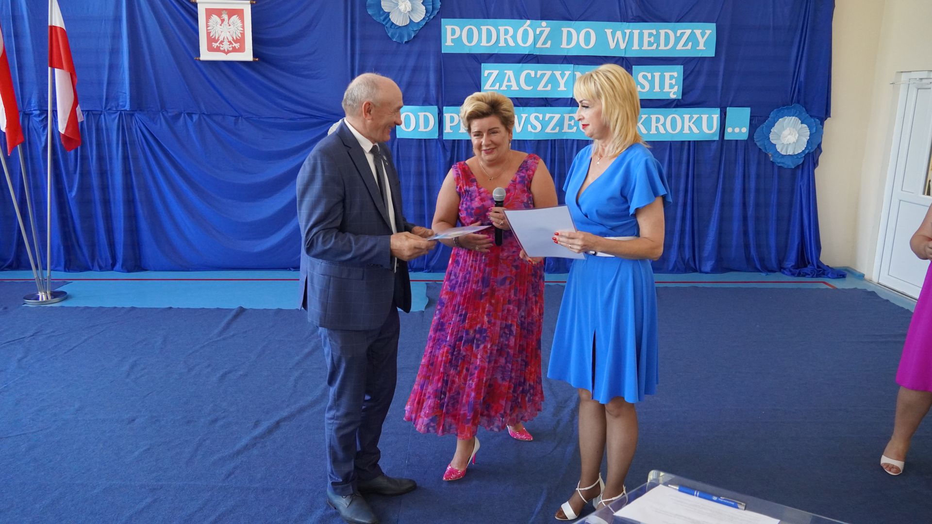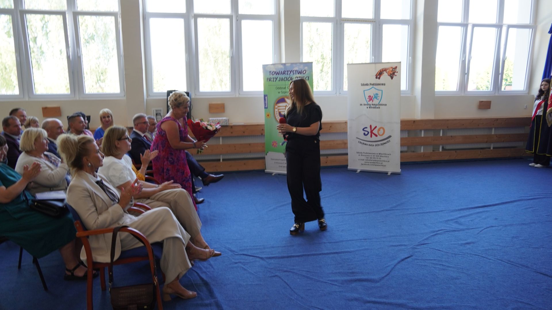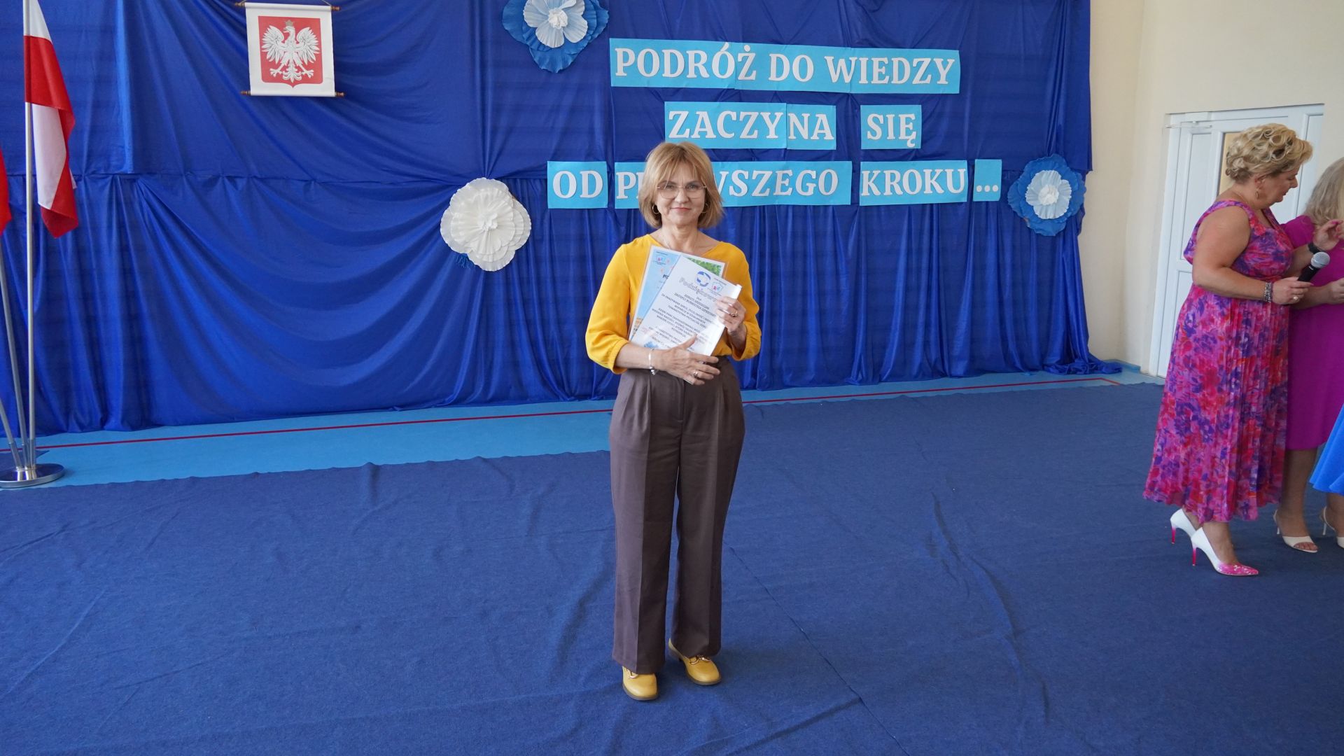 Na apelu tradycyjnie dyrektor szkoły wręczyła dyplomy „Przyjaciel Szkoły”, a także wraz z Panią Cecylią Brodzińską, Prezesem TPD, dyplomy „Przyjaciel Towarzystwa Przyjaciół Dzieci Oddział Gminny w Szprotawie”.