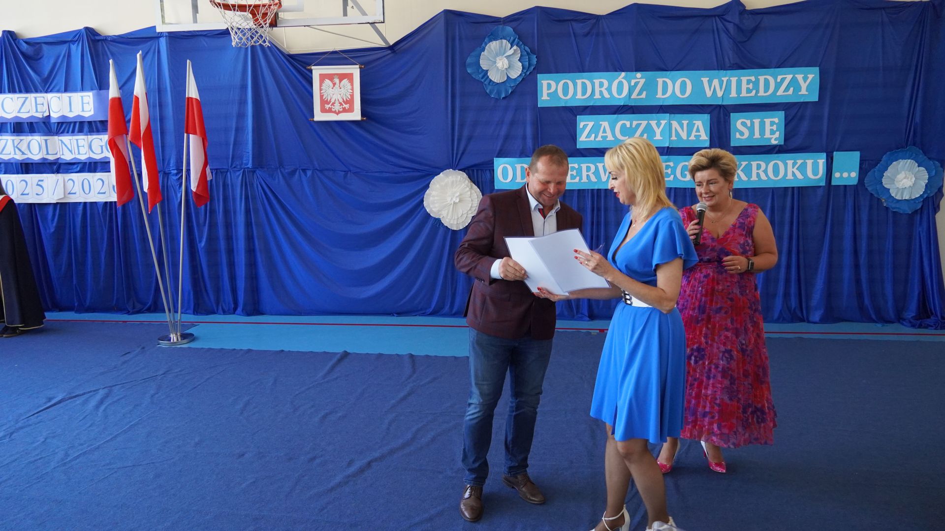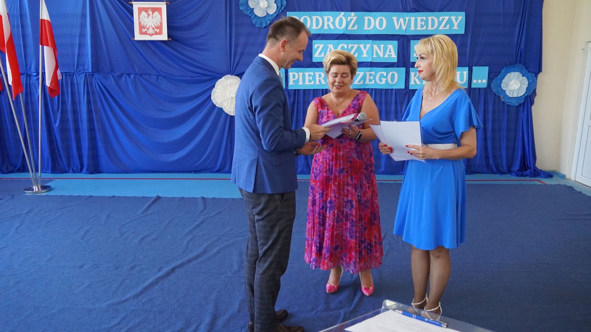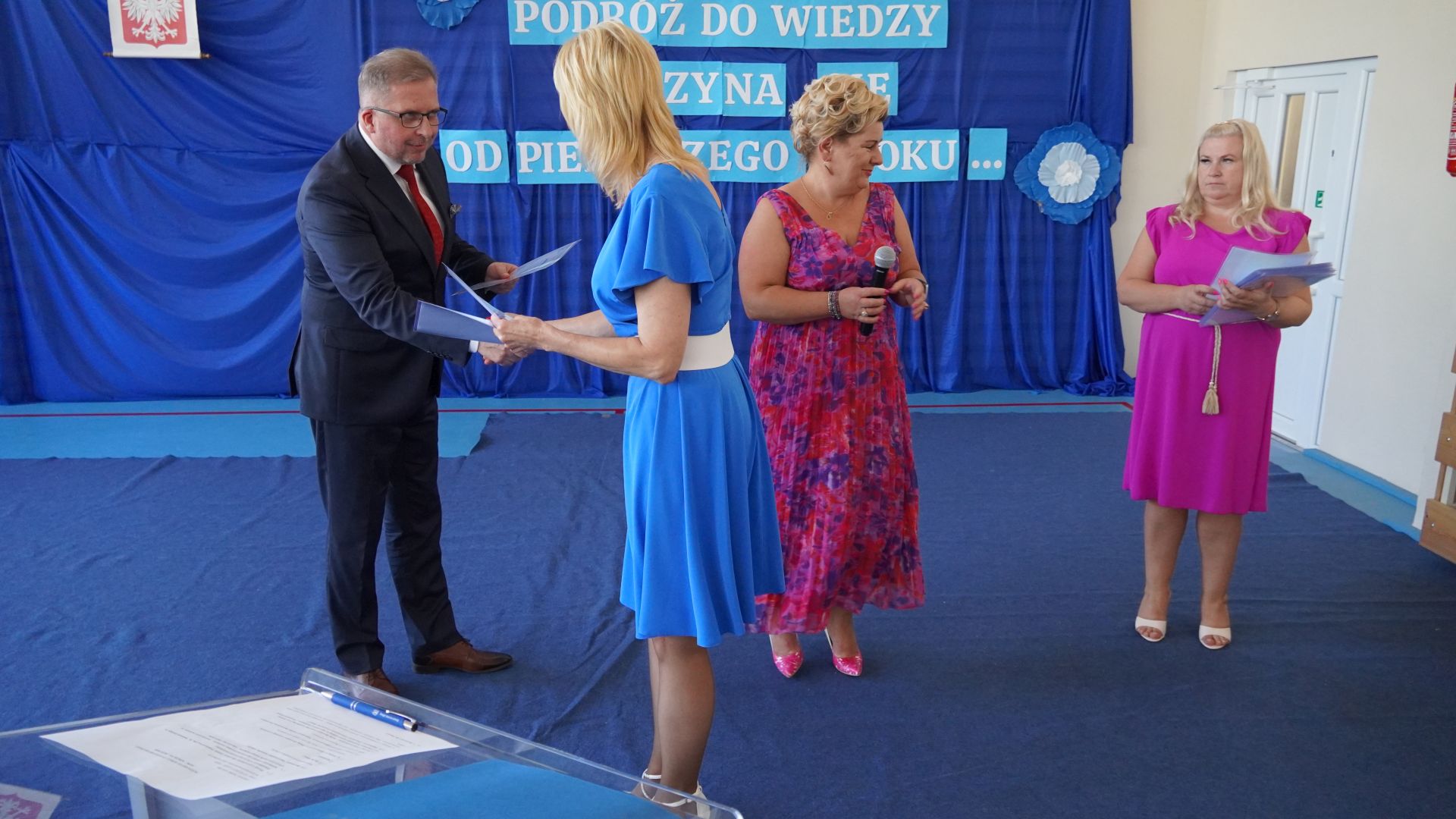Na apelu tradycyjnie dyrektor szkoły wręczyła dyplomy „Przyjaciel Szkoły”, a także wraz z Panią Cecylią Brodzińską, Prezesem TPD, dyplomy „Przyjaciel Towarzystwa Przyjaciół Dzieci Oddział Gminny w Szprotawie”.