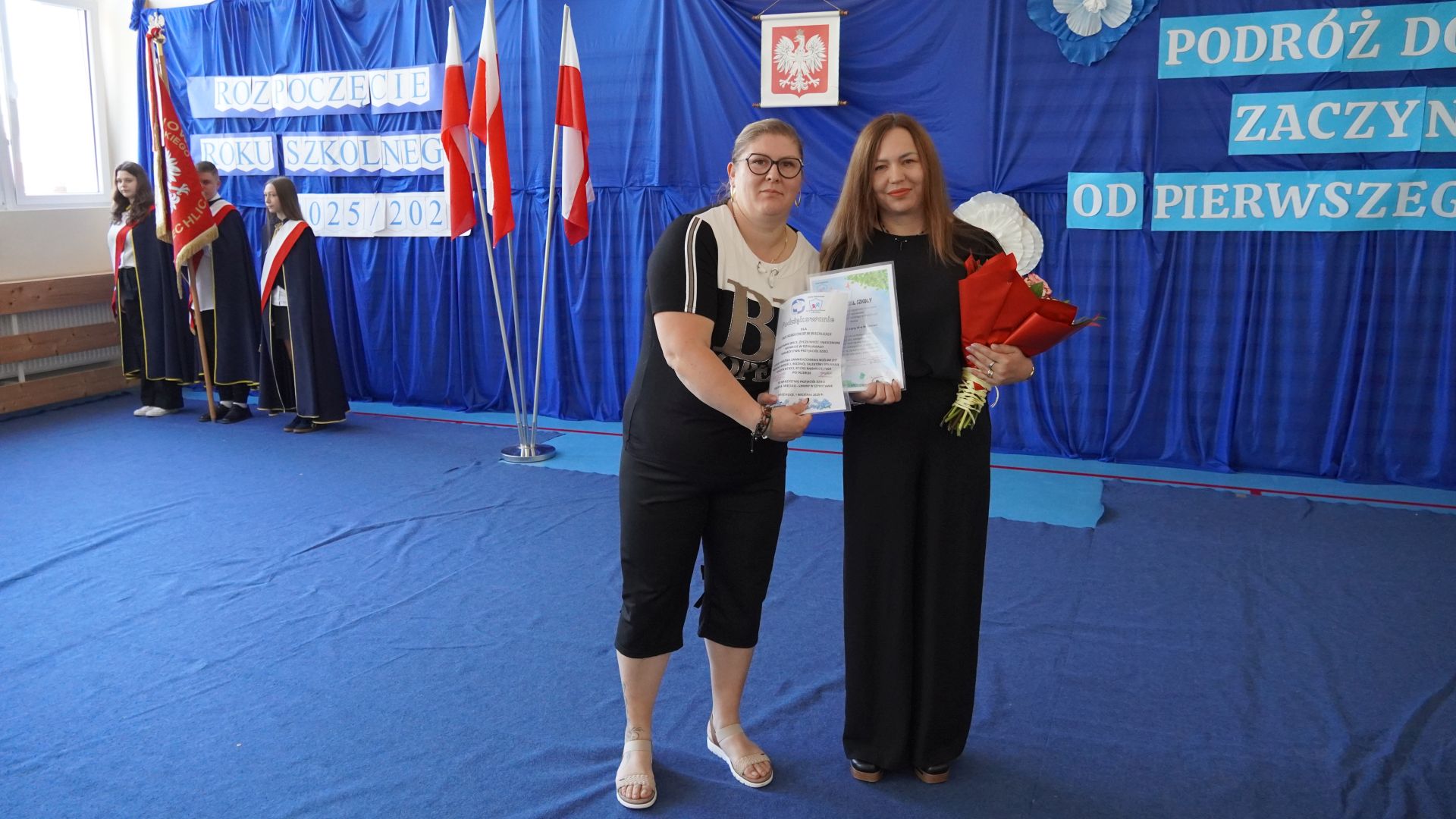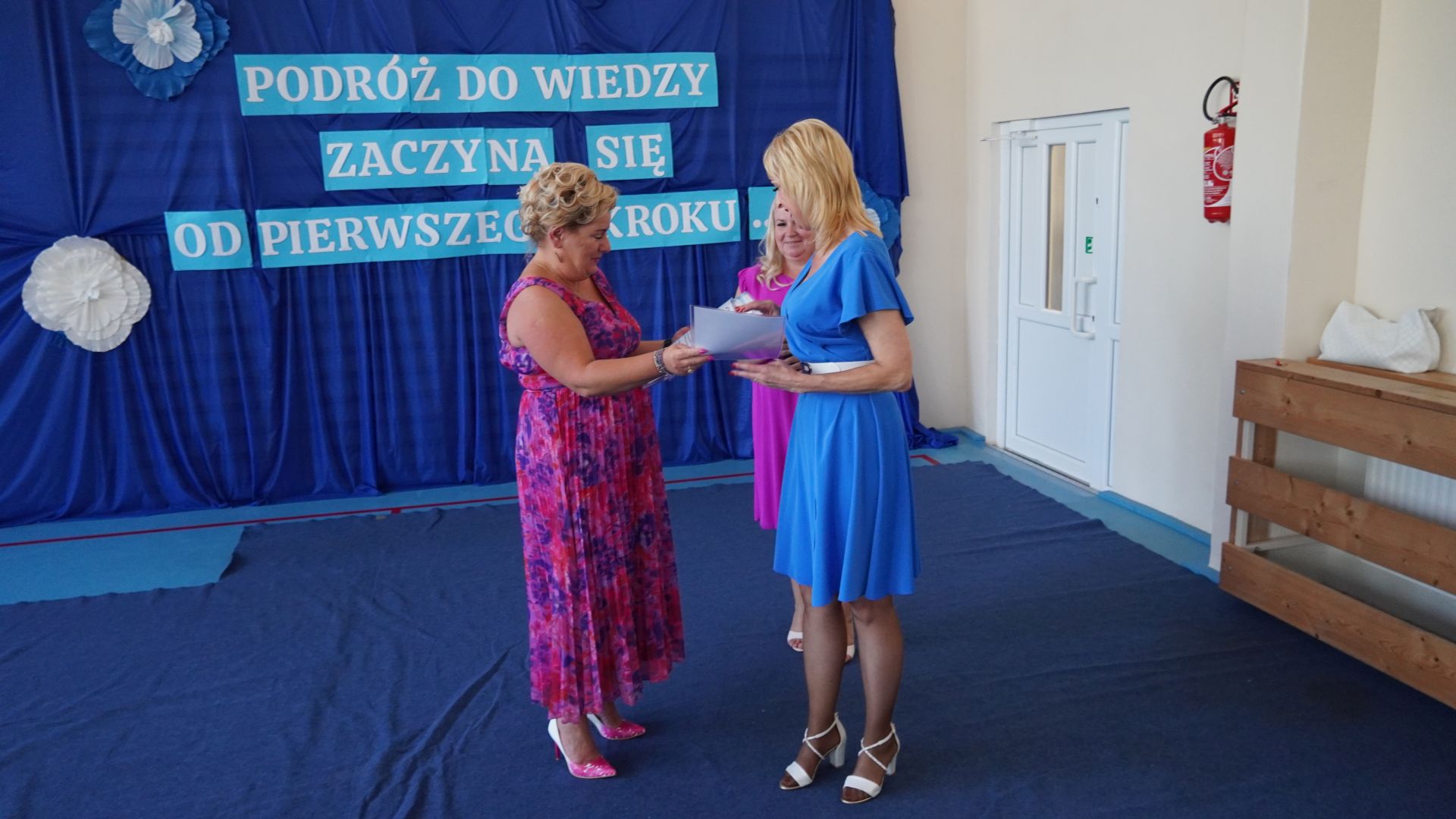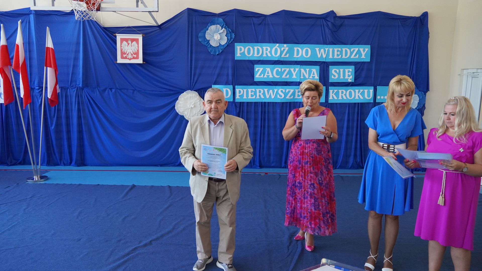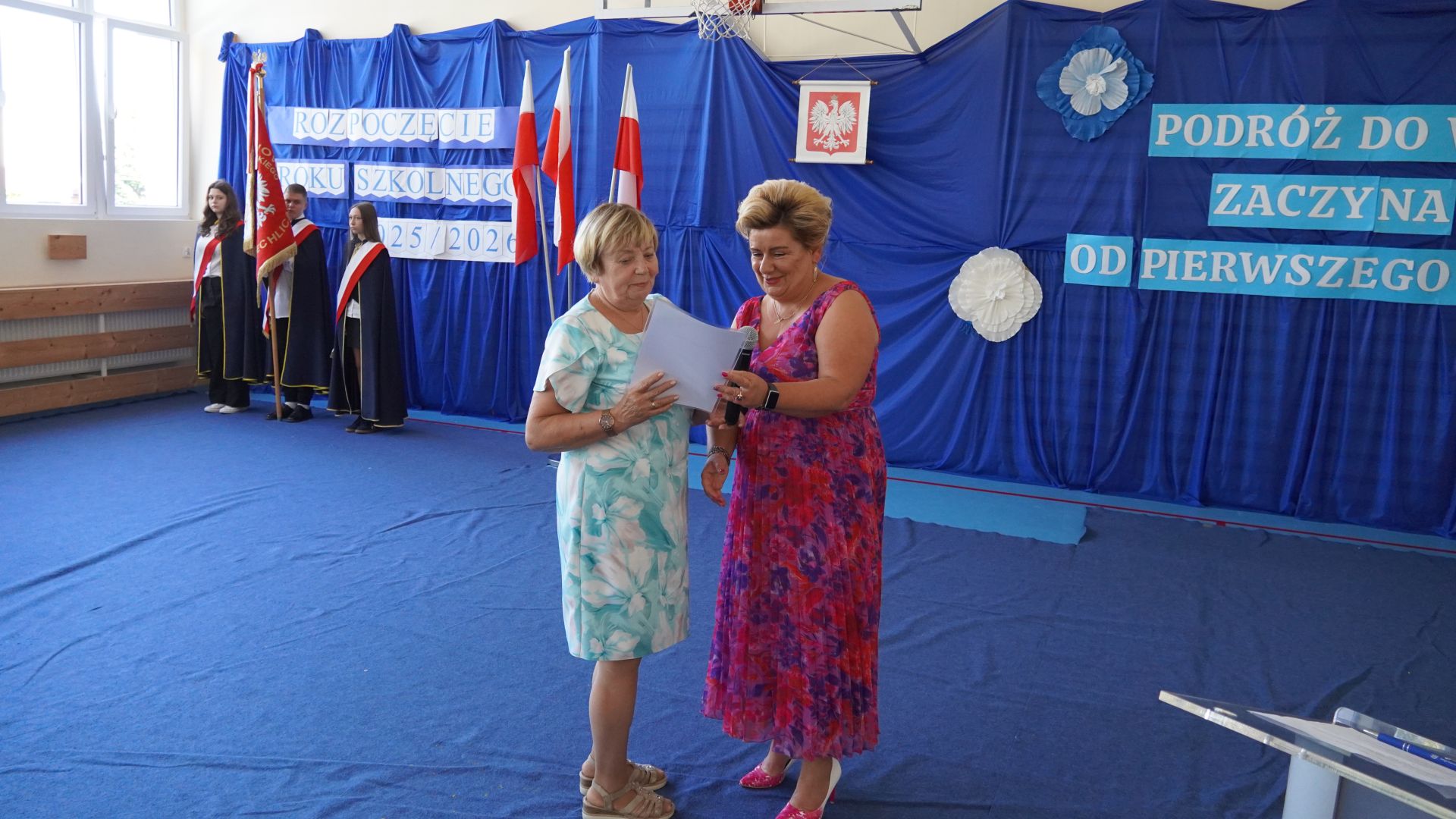 Na apelu tradycyjnie dyrektor szkoły wręczyła dyplomy „Przyjaciel Szkoły”, a także wraz z Panią Cecylią Brodzińską, Prezesem TPD, dyplomy „Przyjaciel Towarzystwa Przyjaciół Dzieci Oddział Gminny w Szprotawie”.